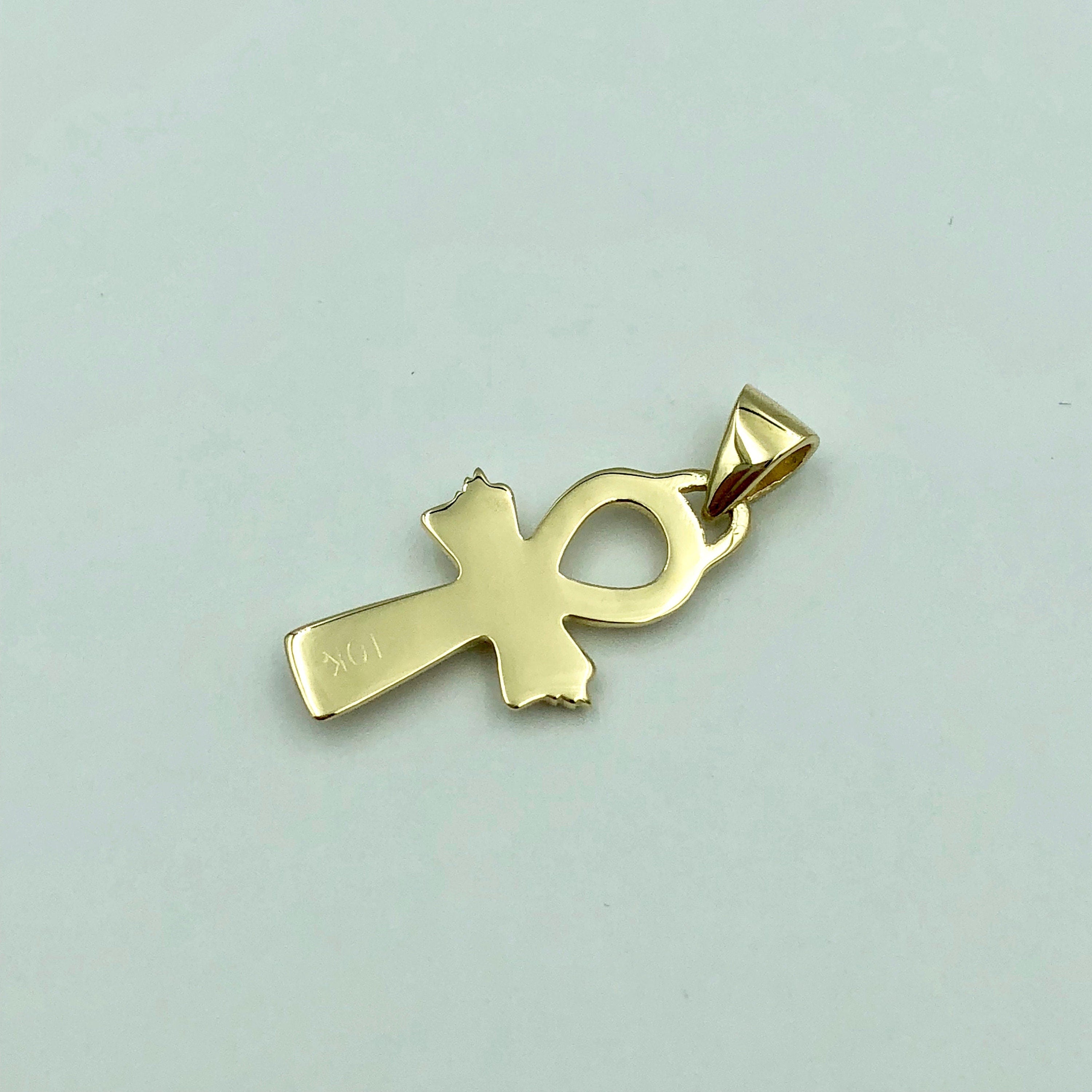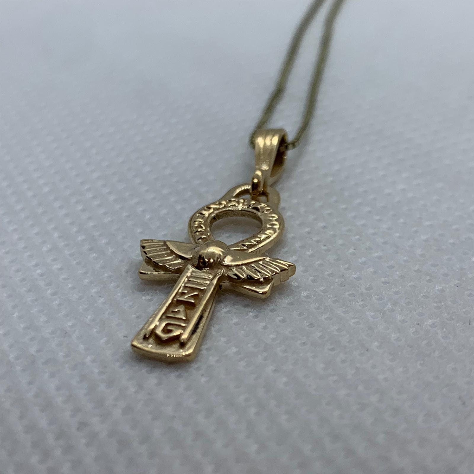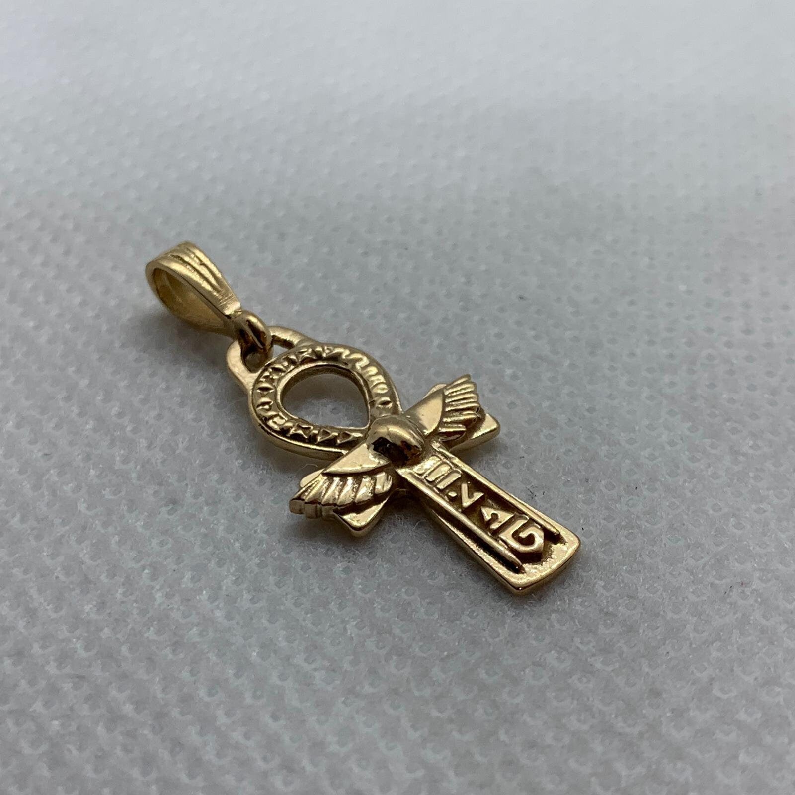 Sale - 40% Off- Egyptian Ankh Pendant *18k Yellow Gold* Hieroglyphic Egypt Cross Amulet Necklace Charm