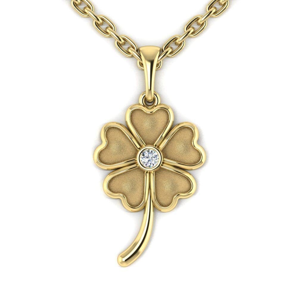 Five Leaf Clover Pendant *Moissanite With 10k/14k/18k White, Yellow, Rose, Green Gold, Gold Plated & Silver* Heart Flower Luck Love Charm