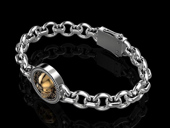 As this is a 2 tone bracelet, please let us know the color breakdown you prefer. Let us know what color gold (yellow, white, rose, green or plating combination) you would like for the skull and the band.