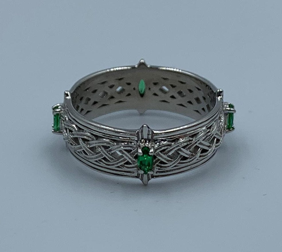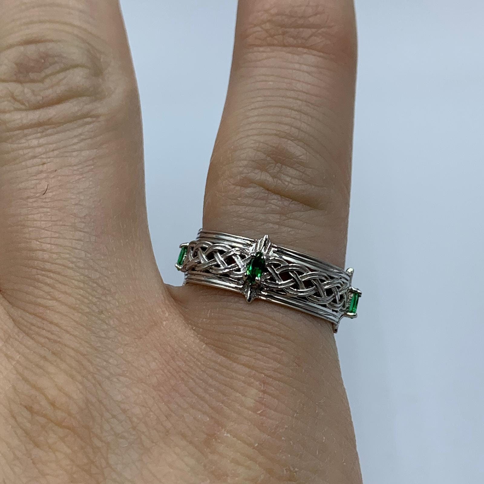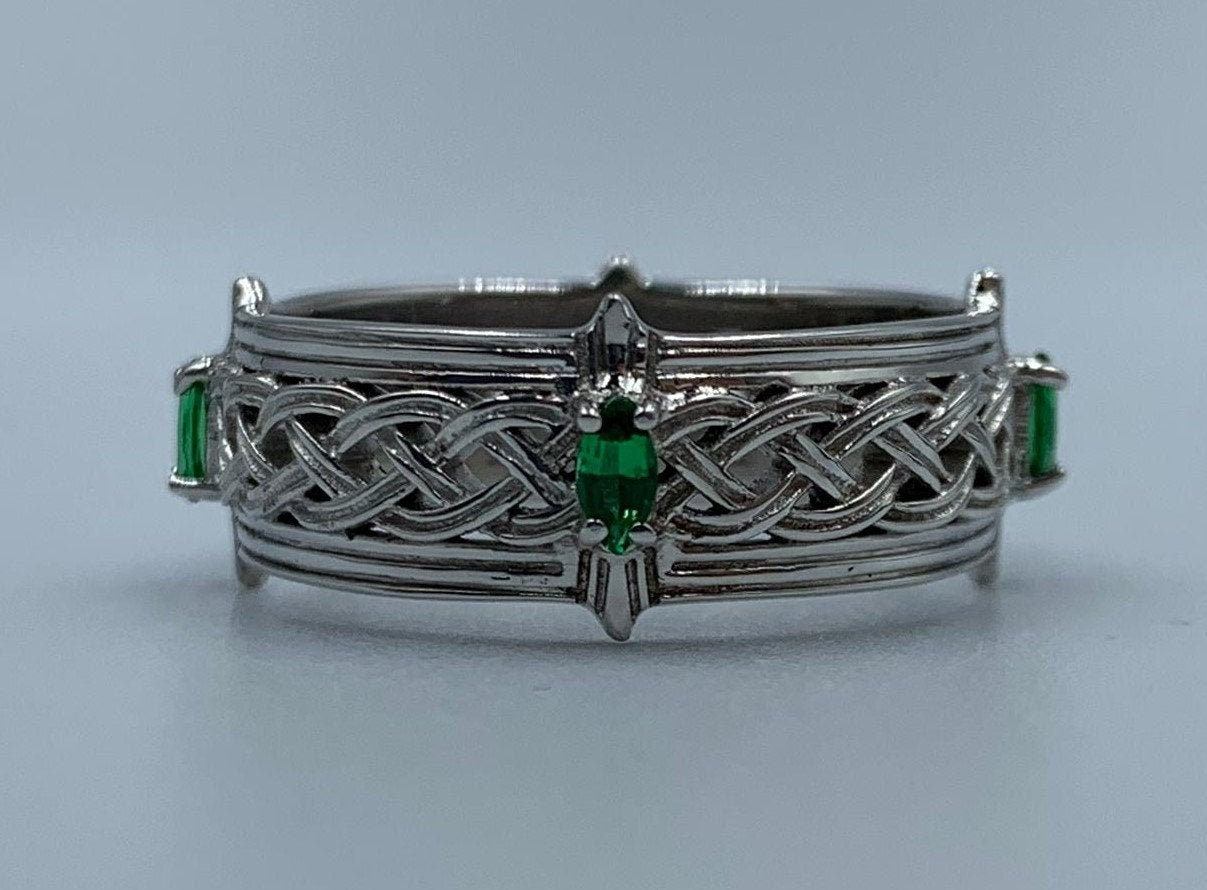 Jax Vintage Ring *Synthetic Emerald with 10k/14k/18k White, Yellow, Rose, Green Gold, Gold Plated & Silver* Celtic Wedding Band Thumb Men