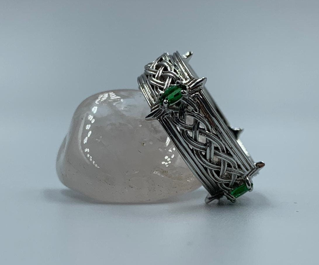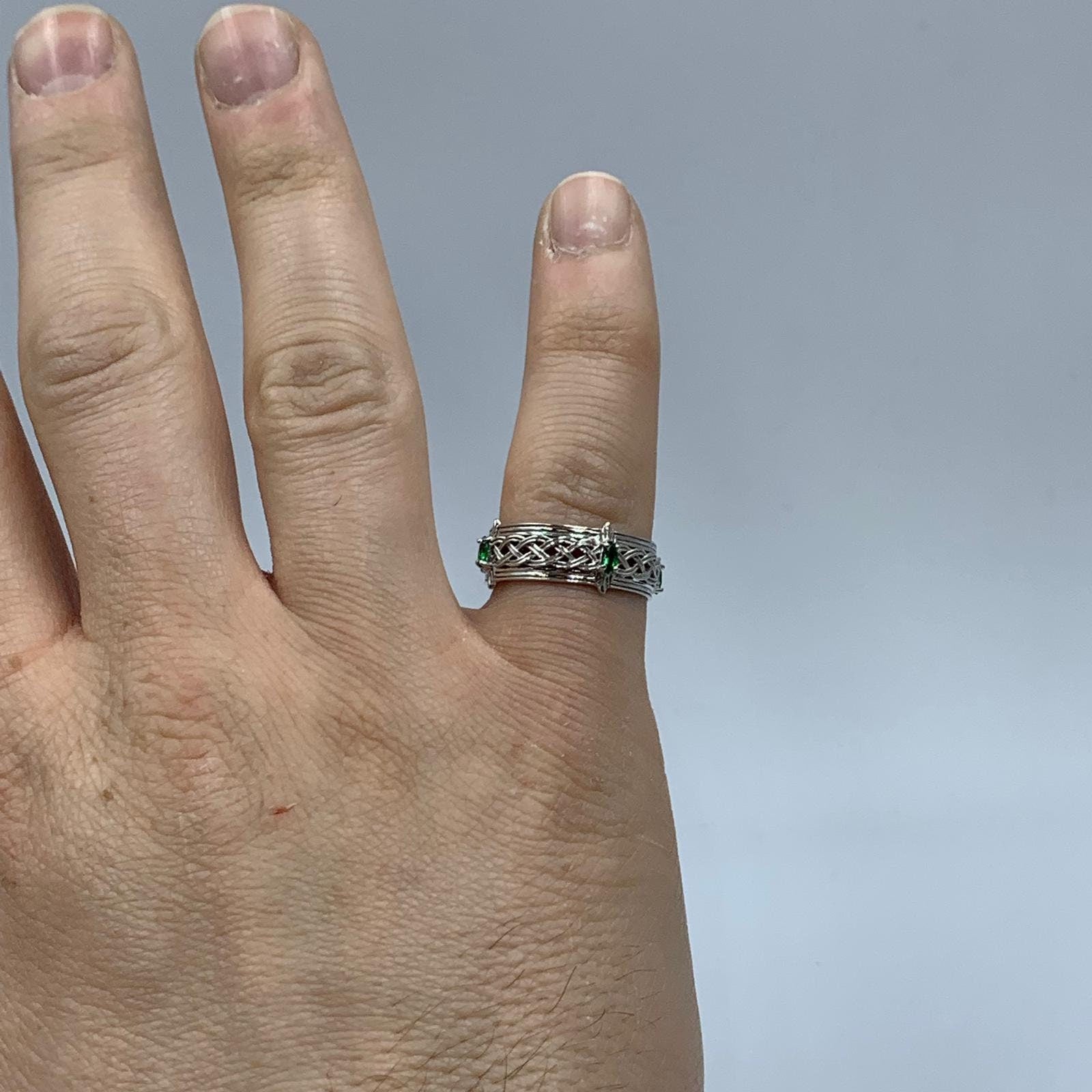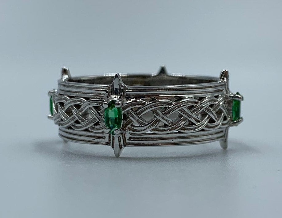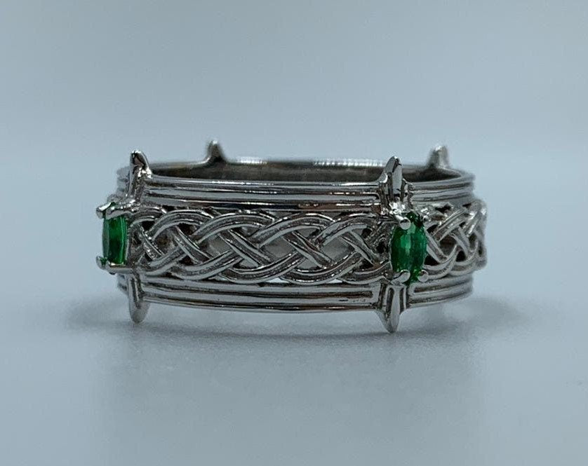 Jax Vintage Ring *Synthetic Emerald with 10k/14k/18k White, Yellow, Rose, Green Gold, Gold Plated & Silver* Celtic Wedding Band Thumb Men