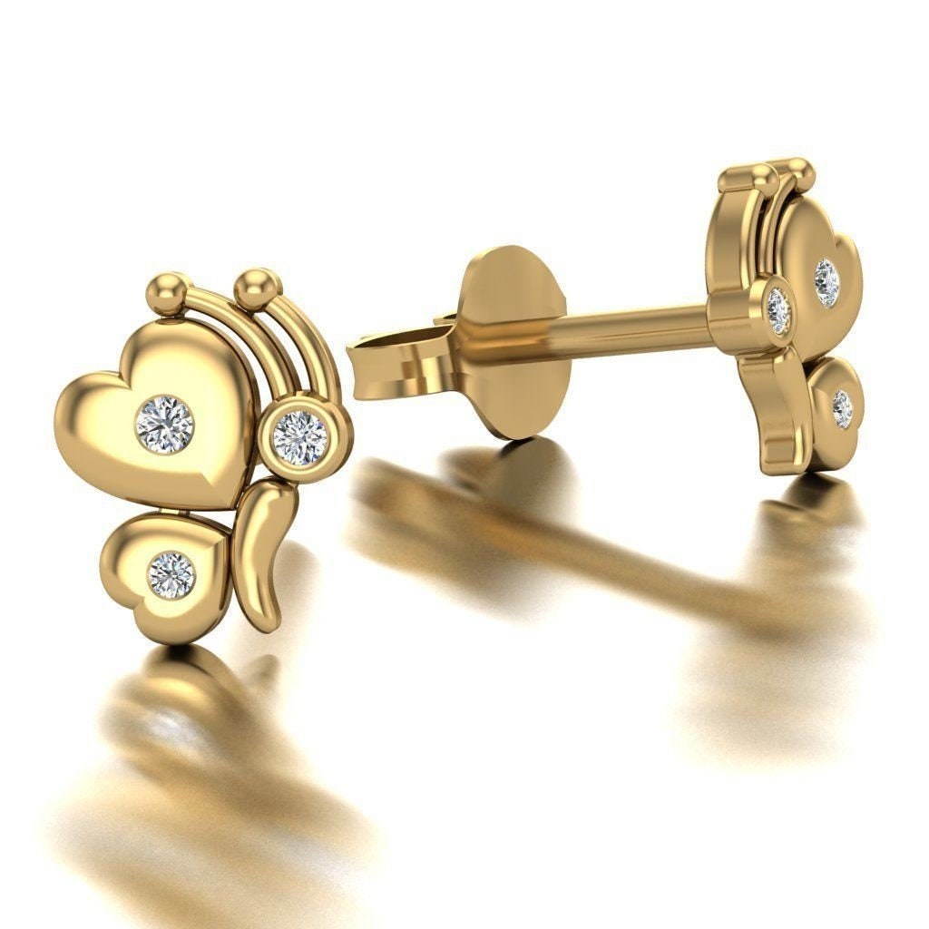 Butterfly Love Earrings *Moissanite With 10k/14k/18k White, Yellow, Rose, Green Gold, Gold Plated & Silver* Animal Heart Girl Women Gift