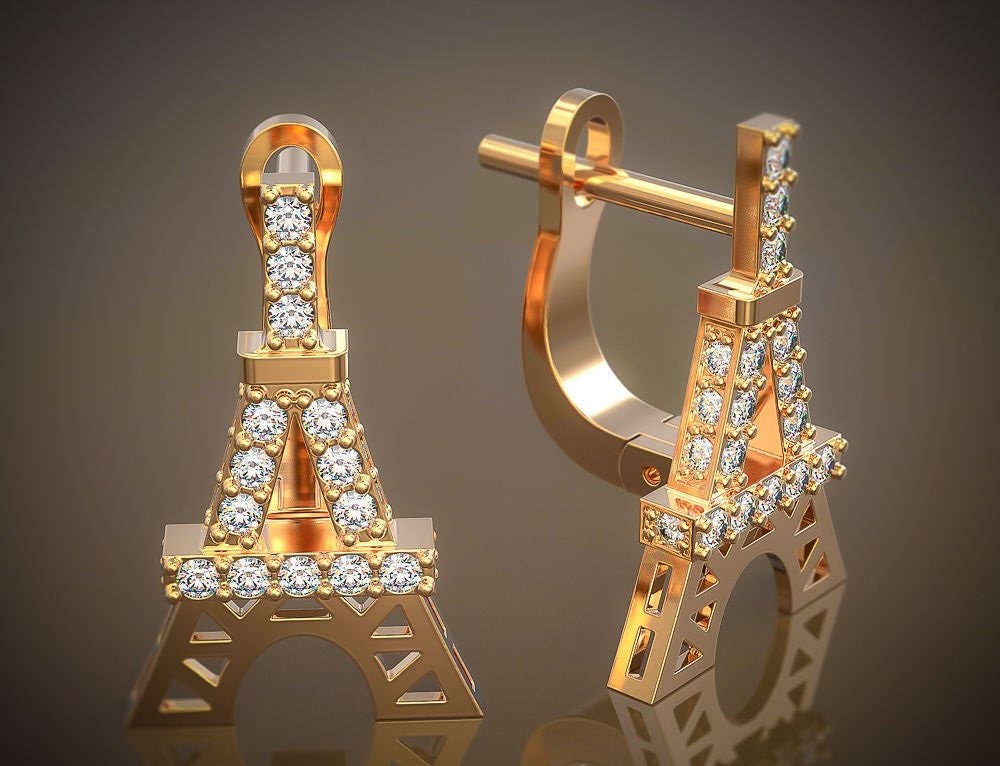 Eiffel Tower Earrings *Moissanite With 10k/14k/18k White, Yellow, Rose, Green Gold, Gold Plated & Silver* Paris France Building Women Gift