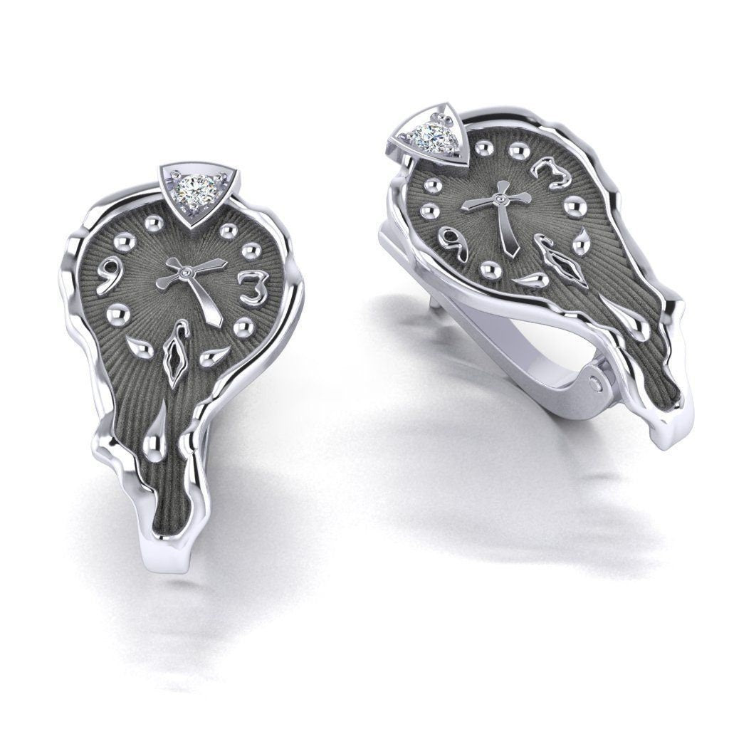 Melting Clock Earrings *Moissanite With 10k/14k/18k White, Yellow, Rose, Green Gold, Gold Plating & Silver* Time Watch Salvador Dali