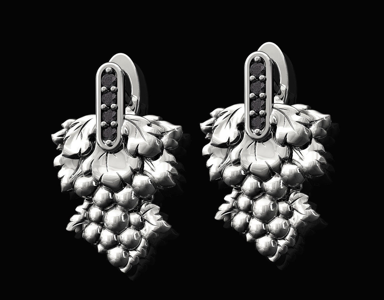 Vintage Grape Earrings *Onyx With 10k/14k/18k White, Yellow, Rose, Green Gold, Gold Plated & Silver* Fruit Food Wine Farm Women Woman Girl