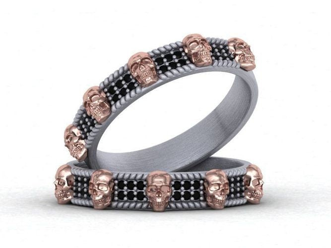 Edgar Skull Ring *Moissanite/Onyx With 10k/14k/18k White, Yellow, Rose, Green Gold, Gold Plated & Silver* Gothic Punk Biker Wedding Band
