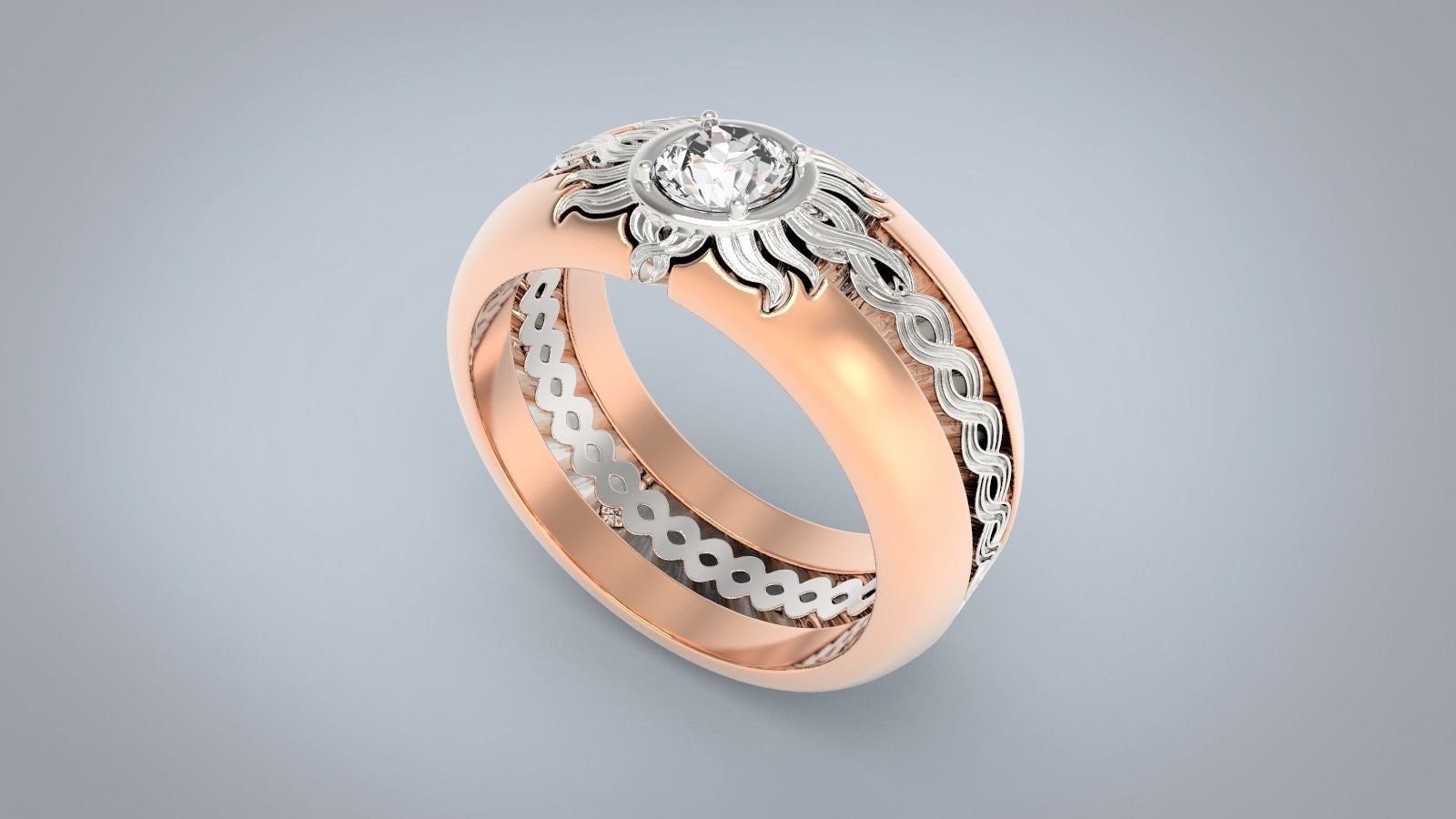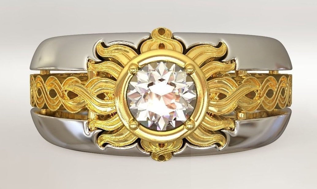 Sold OutAs this is a 2 tone ring, please let us know the color breakdown you prefer. Let us know what color gold (yellow, white, rose, green or plating combination) you would like for the center portion and the outer portion.