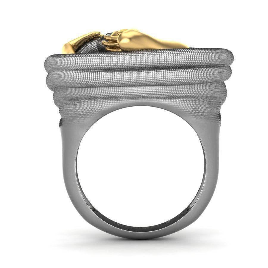 As this is a 2 tone ring, please let us know the color breakdown you prefer. Let us know what color gold (yellow, white, rose, green or plating combination) you would like for the snake and Adam.