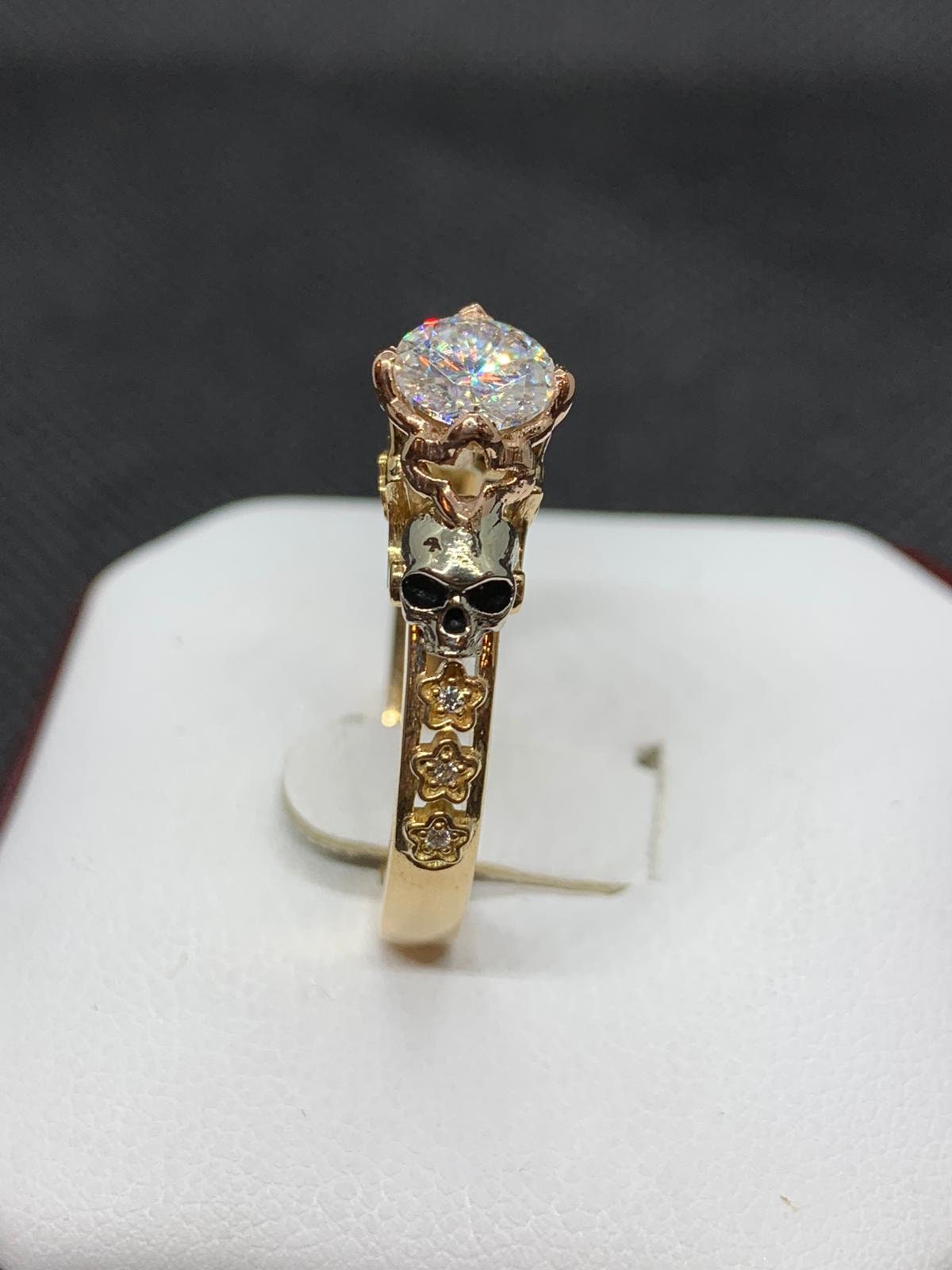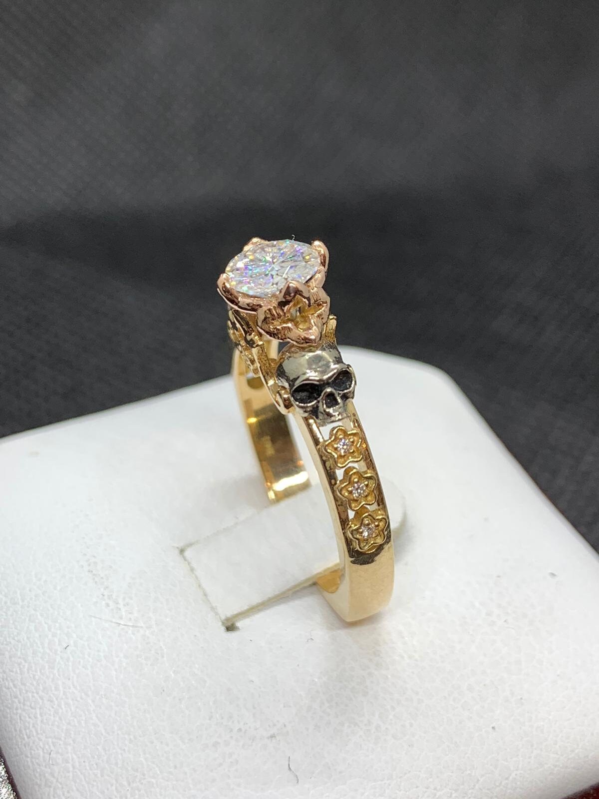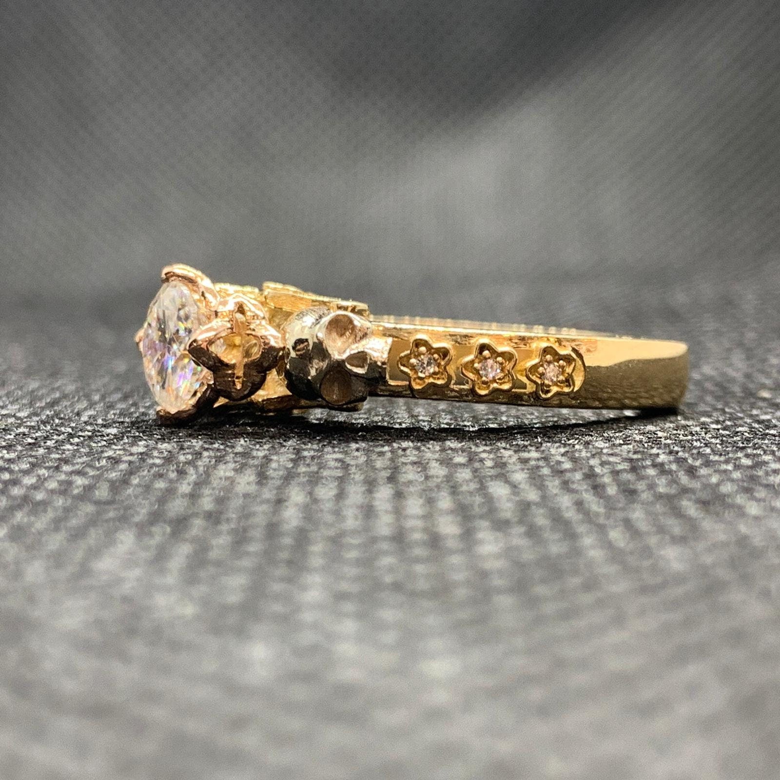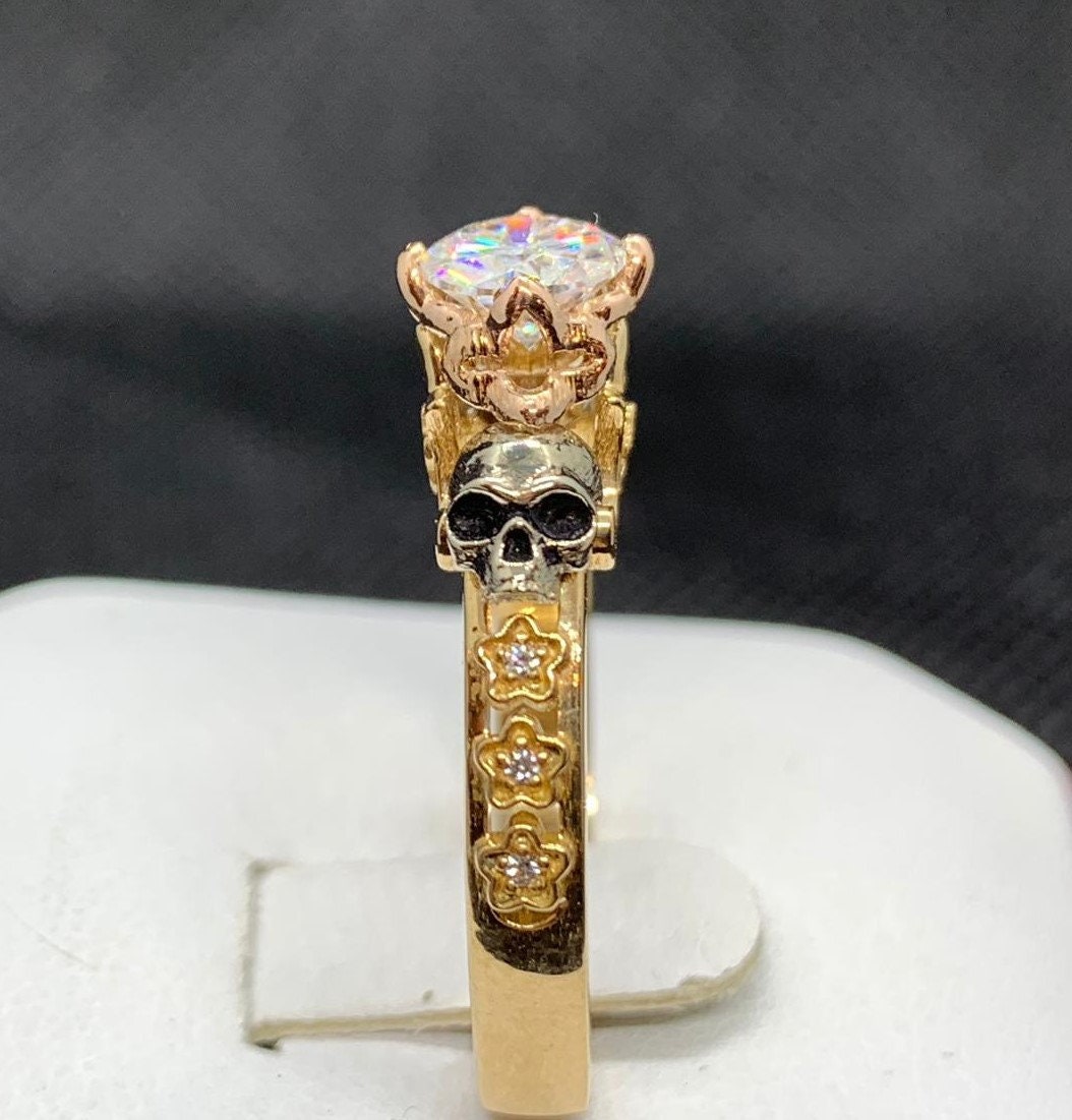 Till The Day We Die Skull Engagement Ring *0.84 Carat Moissanite With 10k/14k/18k White, Yellow, Rose, Green Gold, Gold Plated & Silver*