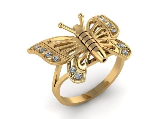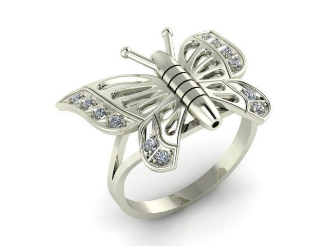 Flutter Butterfly Ring *Moissanite With 10k/14k/18k White, Yellow, Rose, Green Gold, Gold Plated & Silver* Animal Wing Nature Women Thumb