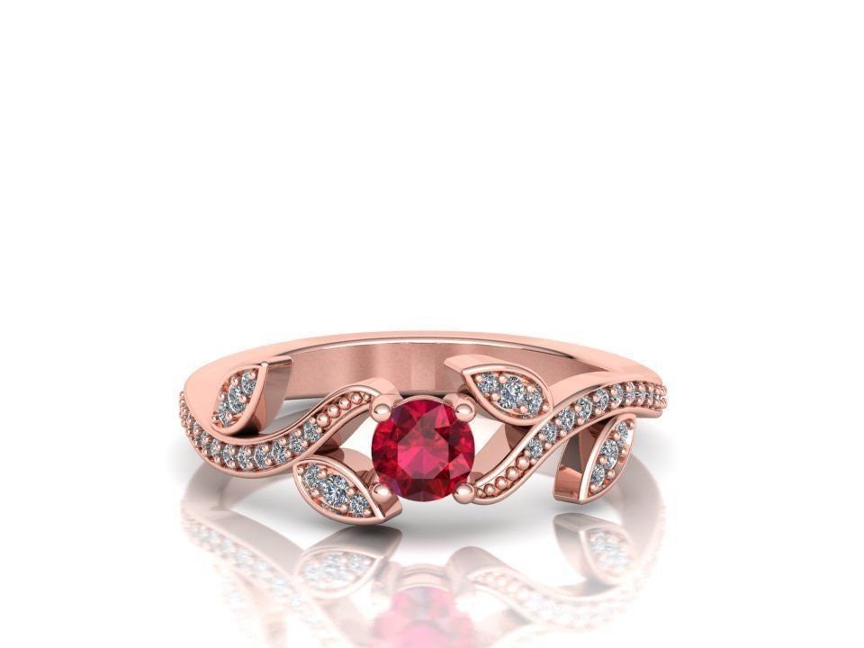 Petunia Engagement Ring *0.50 Carat Moissanite With 10k/14k/18k White, Yellow, Rose, Green Gold, Gold Plated & Silver* Leaf Flower Nature