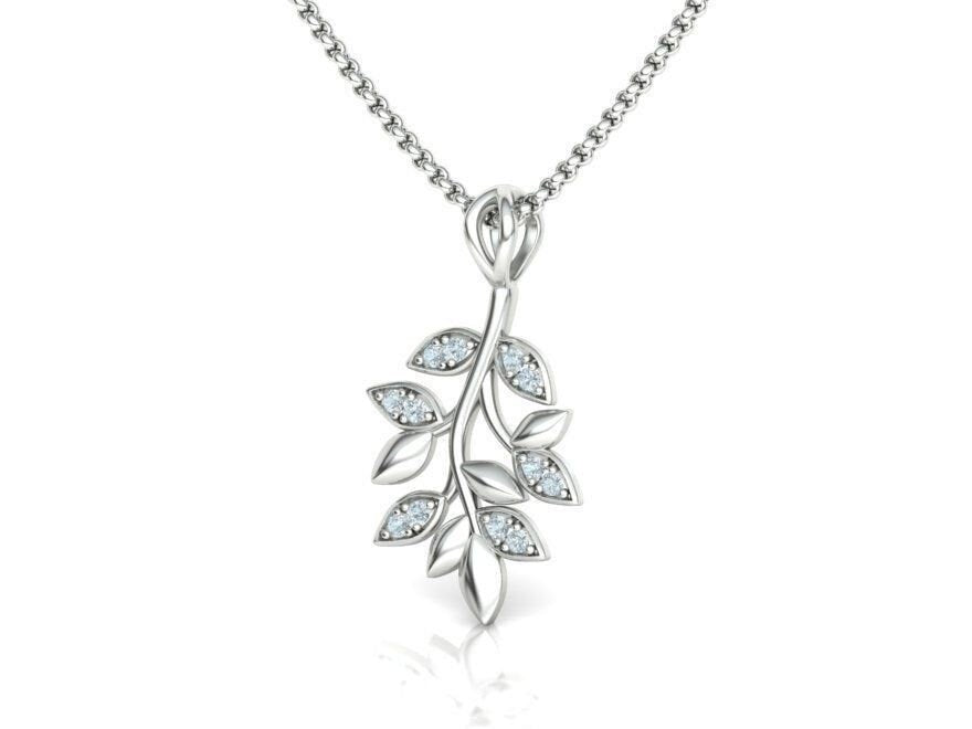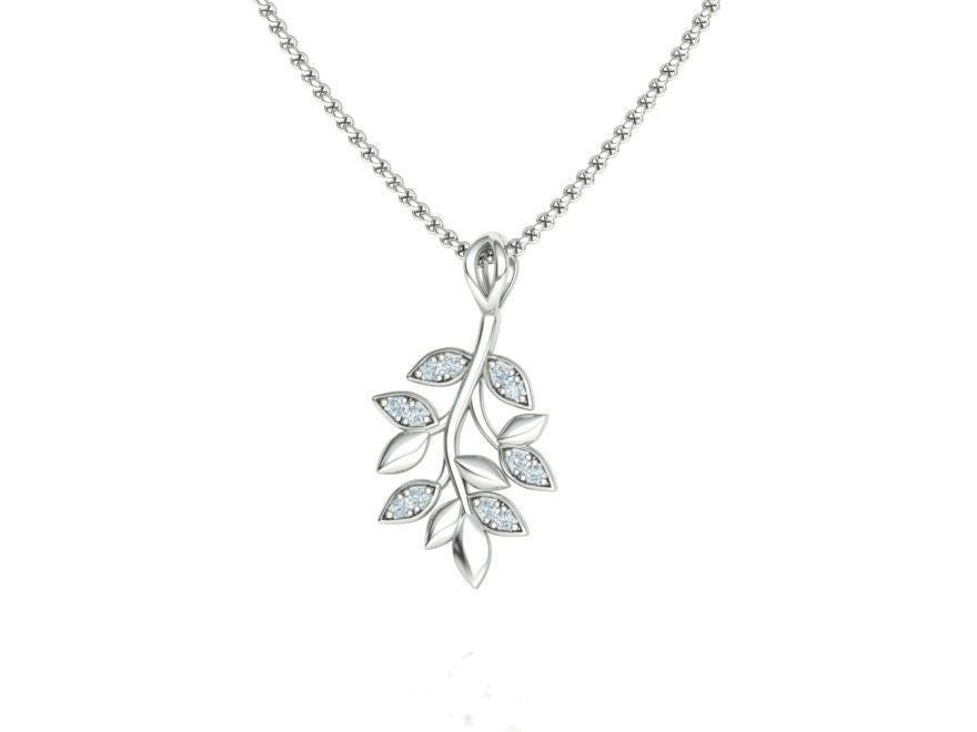 Shade Leaf Pendant *Moissanite With 10k/14k/18k White, Yellow, Rose, Green Gold, Gold Plated & Silver* Leaves Nature Branch Charm Necklace
