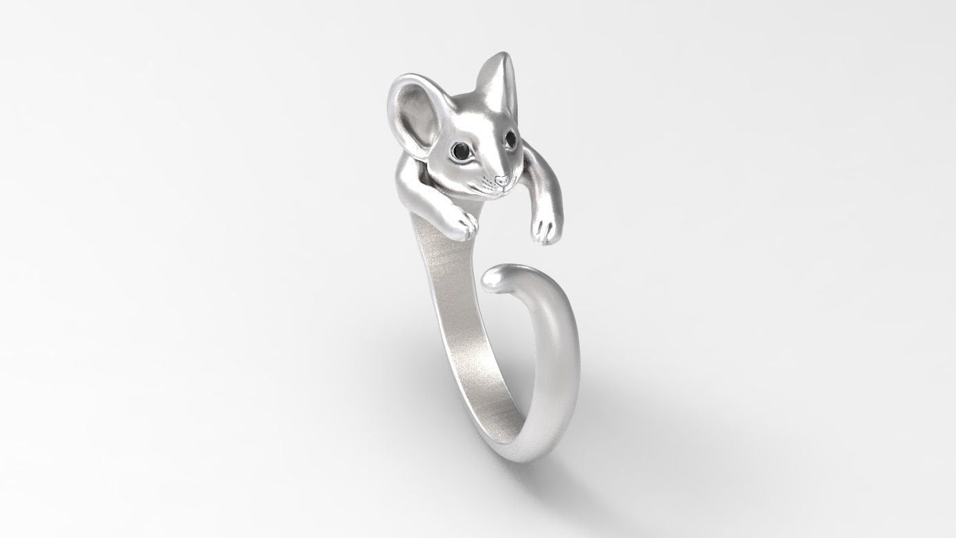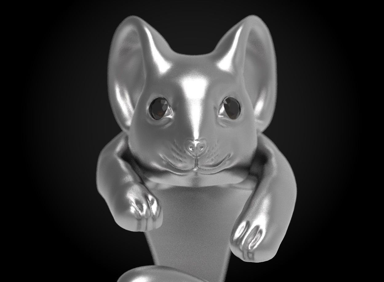 Cheesers Mouse Ring *Onyx With 10k/14k/18k White, Yellow, Rose, Green Gold, Gold Plated & Silver* Animal Pet Vet Women Woman Pinky Thumb