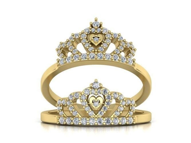 Constance Crown Ring *Moissanite With 10k/14k/18k White, Yellow, Rose, Green Gold, Gold Plated & Silver* Queen Princess Engagement Women