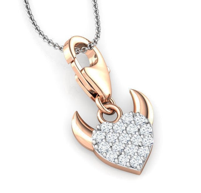 Dainty Devil Pendant *Moissanite With 10k/14k/18k White, Yellow, Rose Green Gold, Gold Plated & Silver* Punk Women Heart Girl Charm Necklace