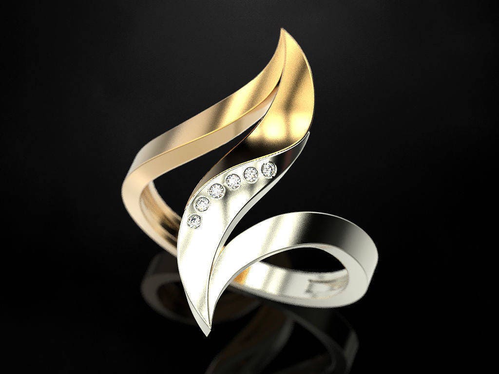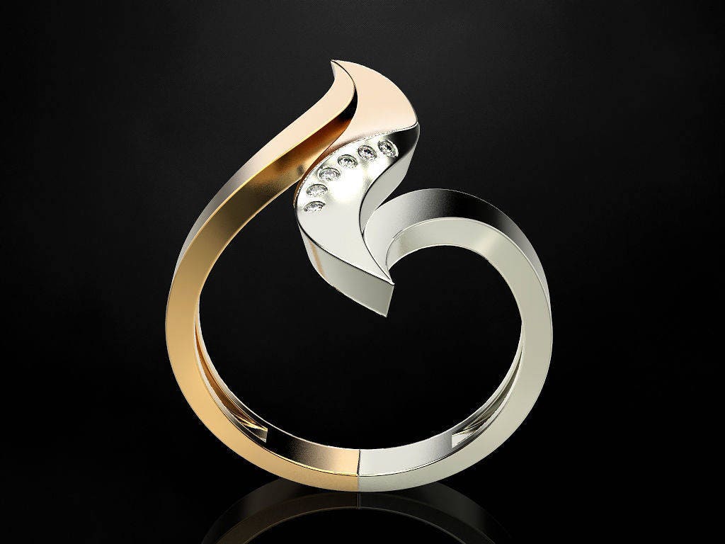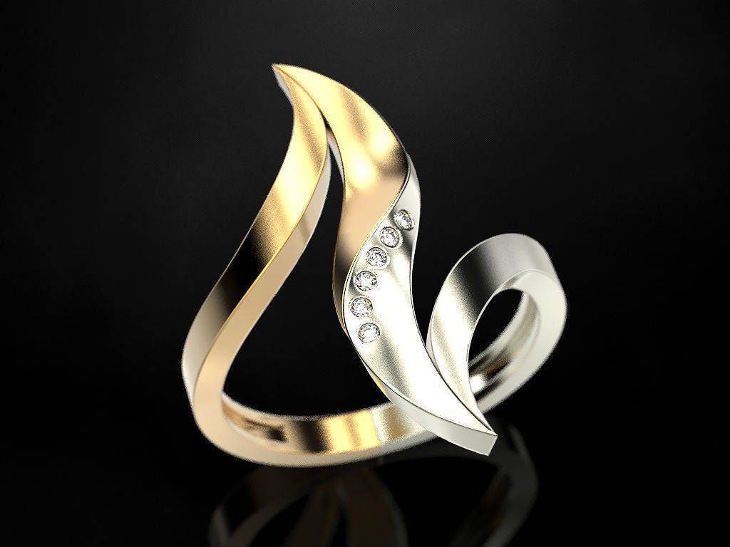 Dalliance Ring *Moissanite With 10k/14k/18k White, Yellow, Rose, Green Gold, Gold Plated & Silver* Modern Anniversary Gift Women's Ring