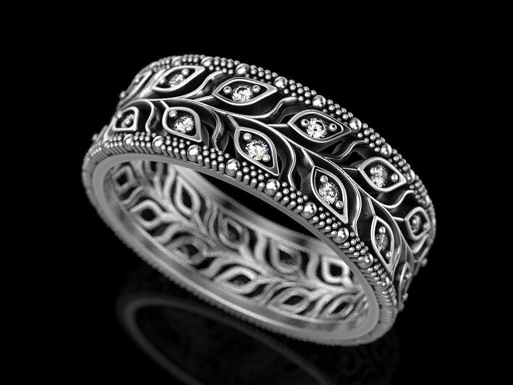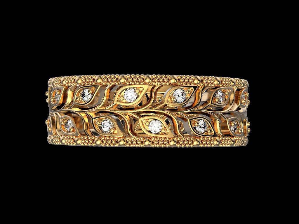 Dewdrop Leaf Ring *Moissanite With 10k/14k/18k White, Yellow, Rose, Green Gold, Gold Plated & Silver* Nature Flower Leaves Women Men Thumb