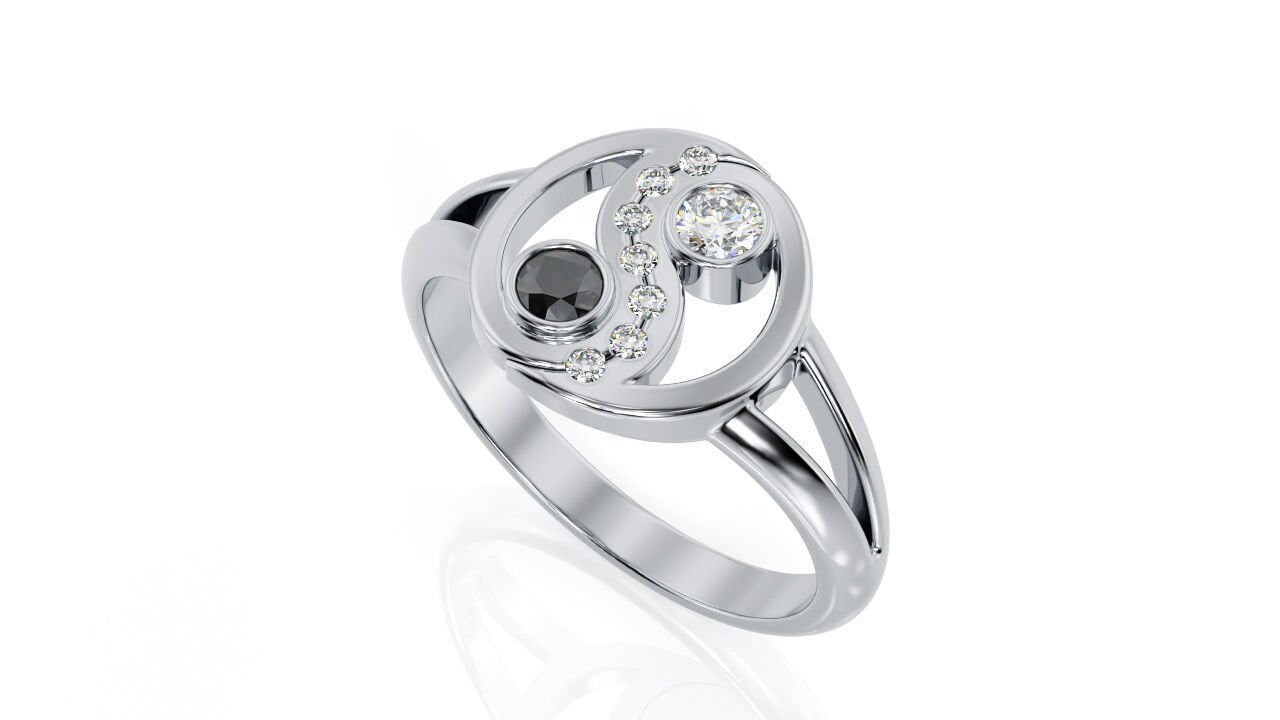 Dualism Yin Yang Ring *Moissanite/Onyx With 10k/14k/18k White, Yellow, Rose Green Gold, Gold Plated & Silver* Philosophy Peace Chinese Gift