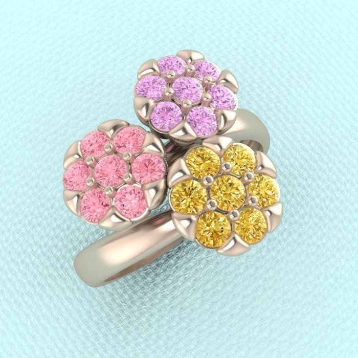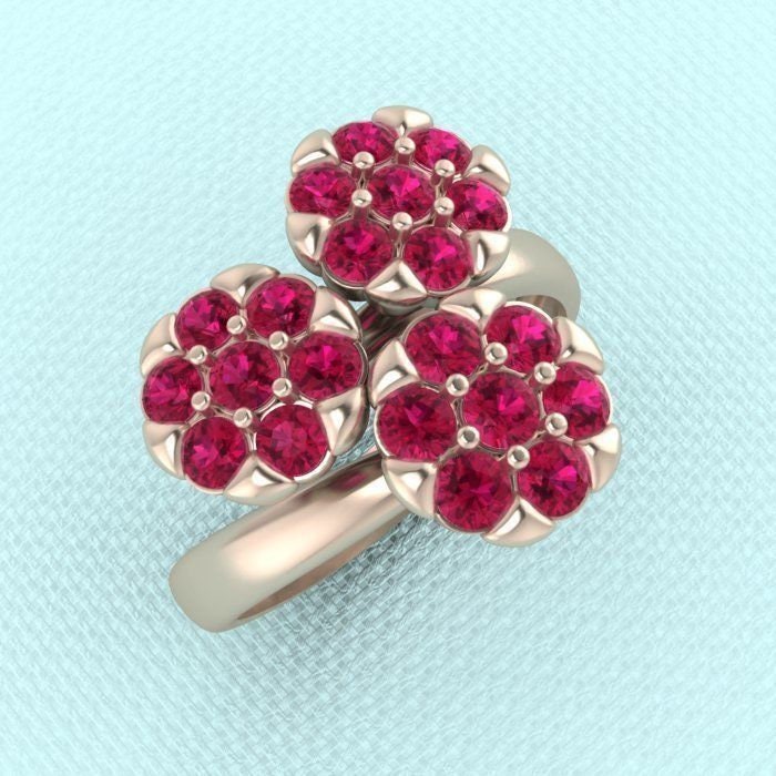 Evelyn Flower Ring *Synthetic Stones With 10k/14k/18k White, Yellow, Rose, Green Gold, Gold Plated & Silver* Nature Daisy Rose Women Gift