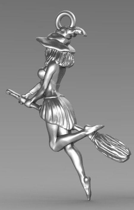 Glinda Witch Pendant *10k/14k/18k White, Yellow, Rose, Green Gold, Gold Plated & Silver* Magic Spell Broomstick Women Charm Necklace Gift