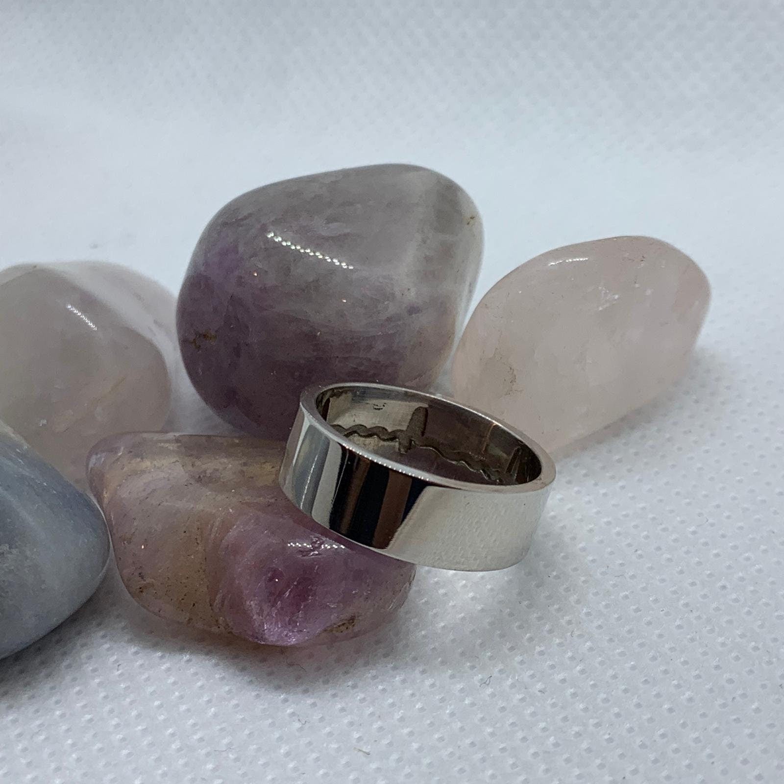We offer this ring in both 6mm band width and 8mm band width. When purchasing, please let us know which you prefer.