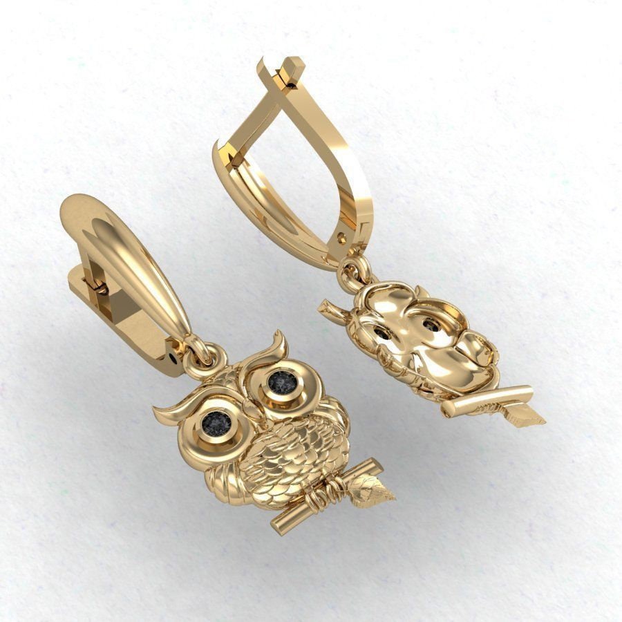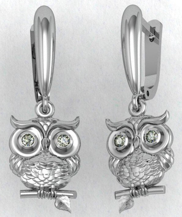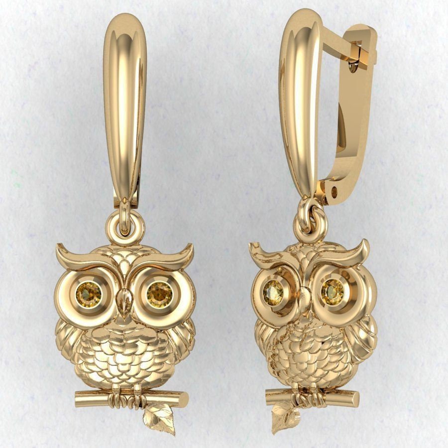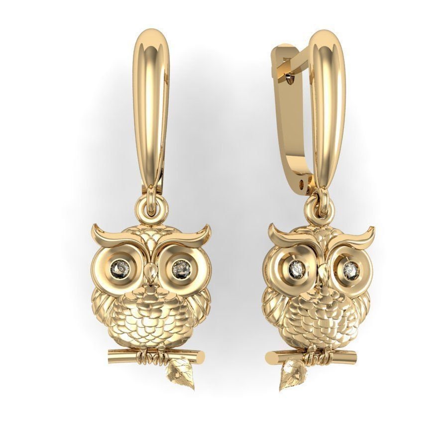 Hoot Owl Earrings *Moissanite With 10k/14k/18k White, Yellow, Rose, Green Gold, Gold Plated & Silver* Bird Pet Animal Vet Women Woman Girl