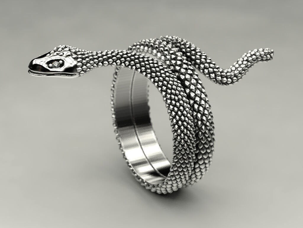 Kaa Snake Ring *Moissanite With 10k/14k/18k White, Yellow, Rose Green Gold, Gold Plated & Silver* Animal Reptile Scale Wrap Men Women Thumb