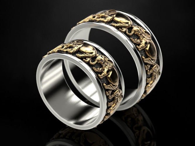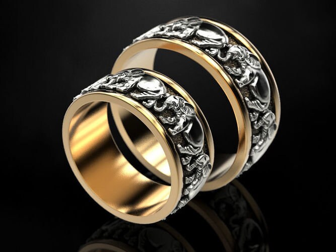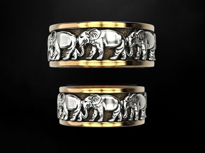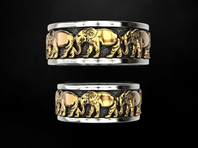 As this is a 2 tone ring, please let us know the color breakdown you prefer. Let us know what color gold (yellow, white, rose, green or plating combination) you would like for the ring and the elephants.