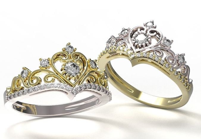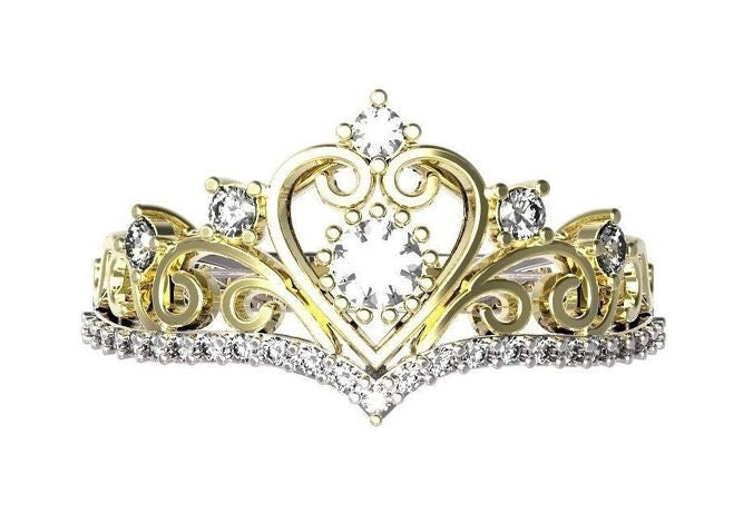 Maria Crown Ring *Moissanite With 10k/14k/18k White, Yellow, Rose, Green Gold, Gold Plated & Silver* Queen Princess Engagement Women Gift