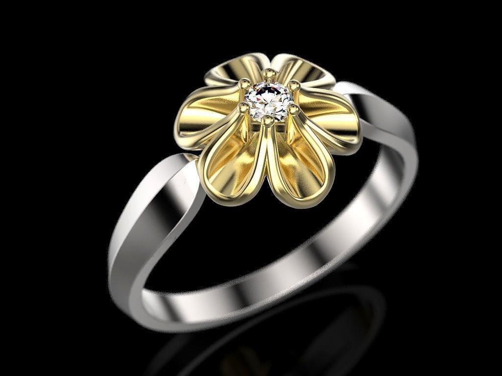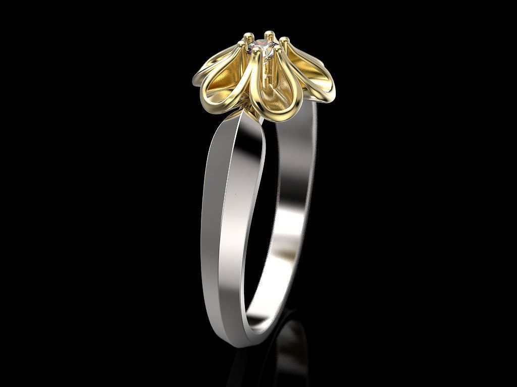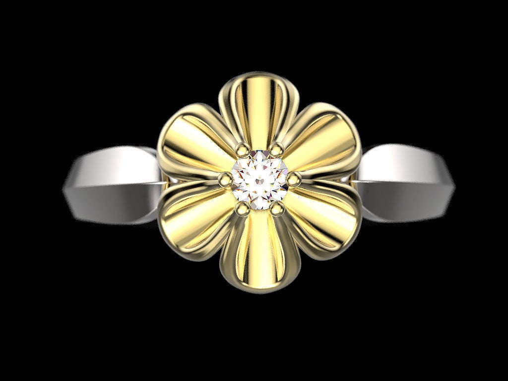 Sold OutAs this is a 2 tone ring, please let us know the color breakdown you prefer. Let us know what color gold (yellow, white, rose, green or plating combination) you would like for the ring and flower.