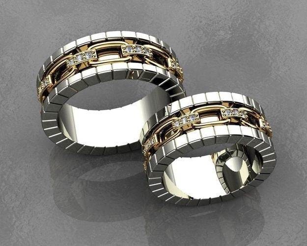 Riley Link Ring *Moissanite With 10k/14k/18k White, Yellow, Rose, Green Gold, Gold Plated & Silver* Chain Men Women Wedding Band Thumb Gift
