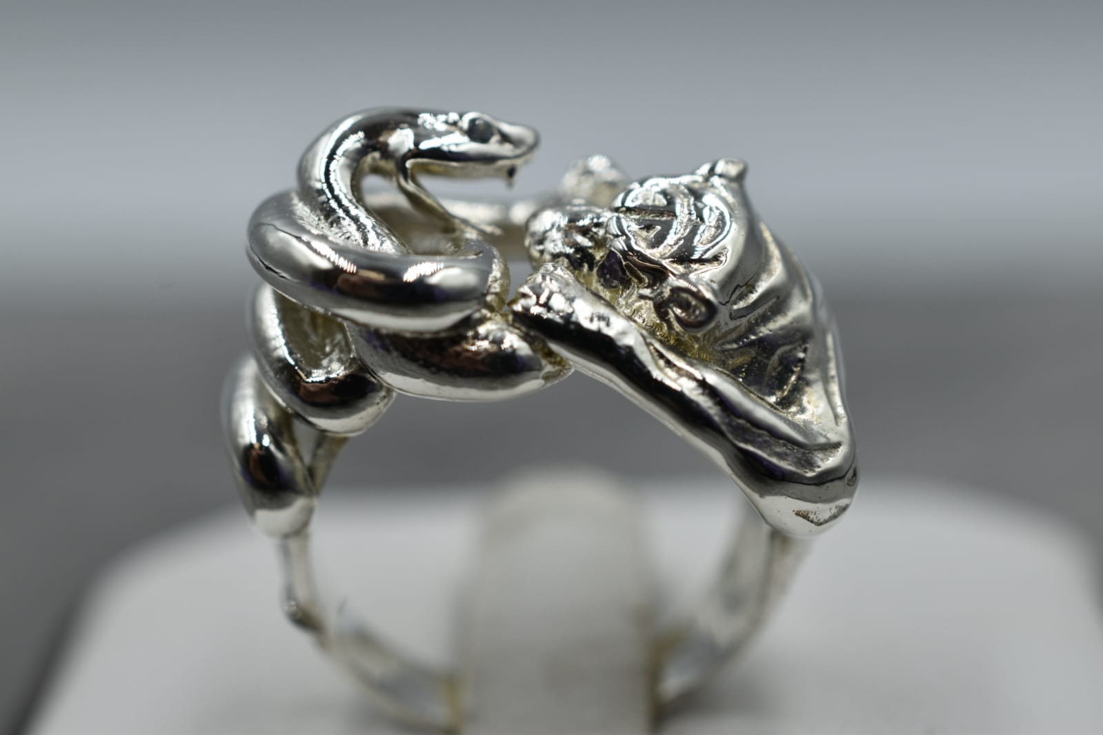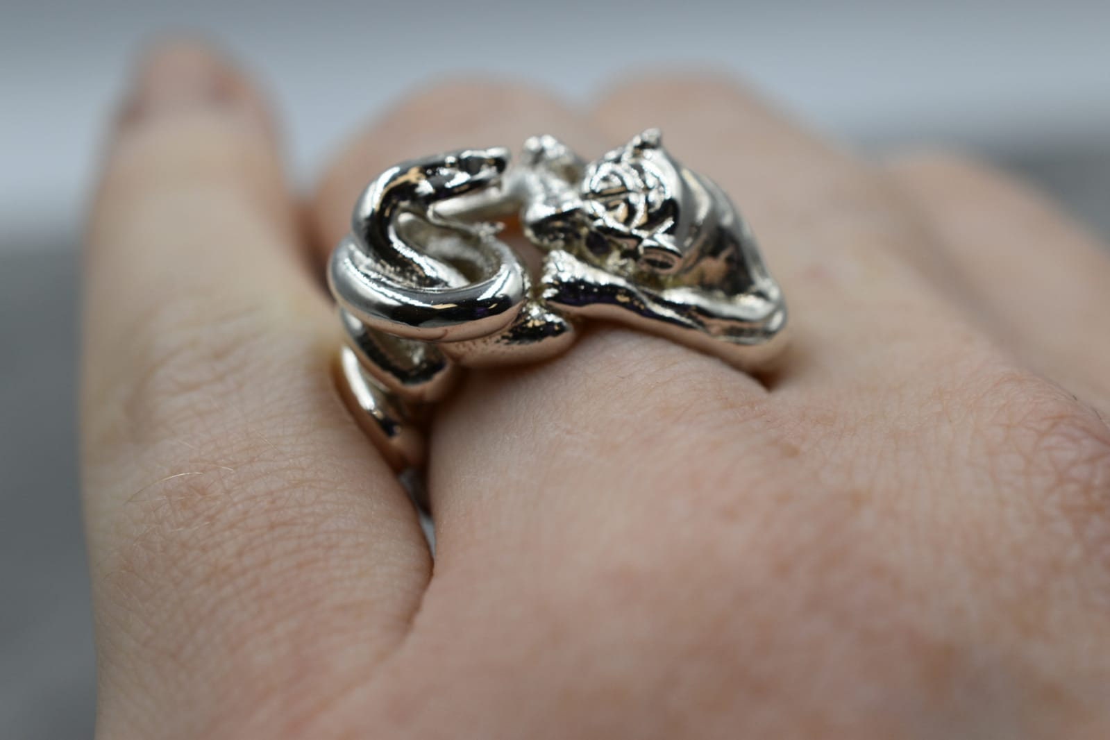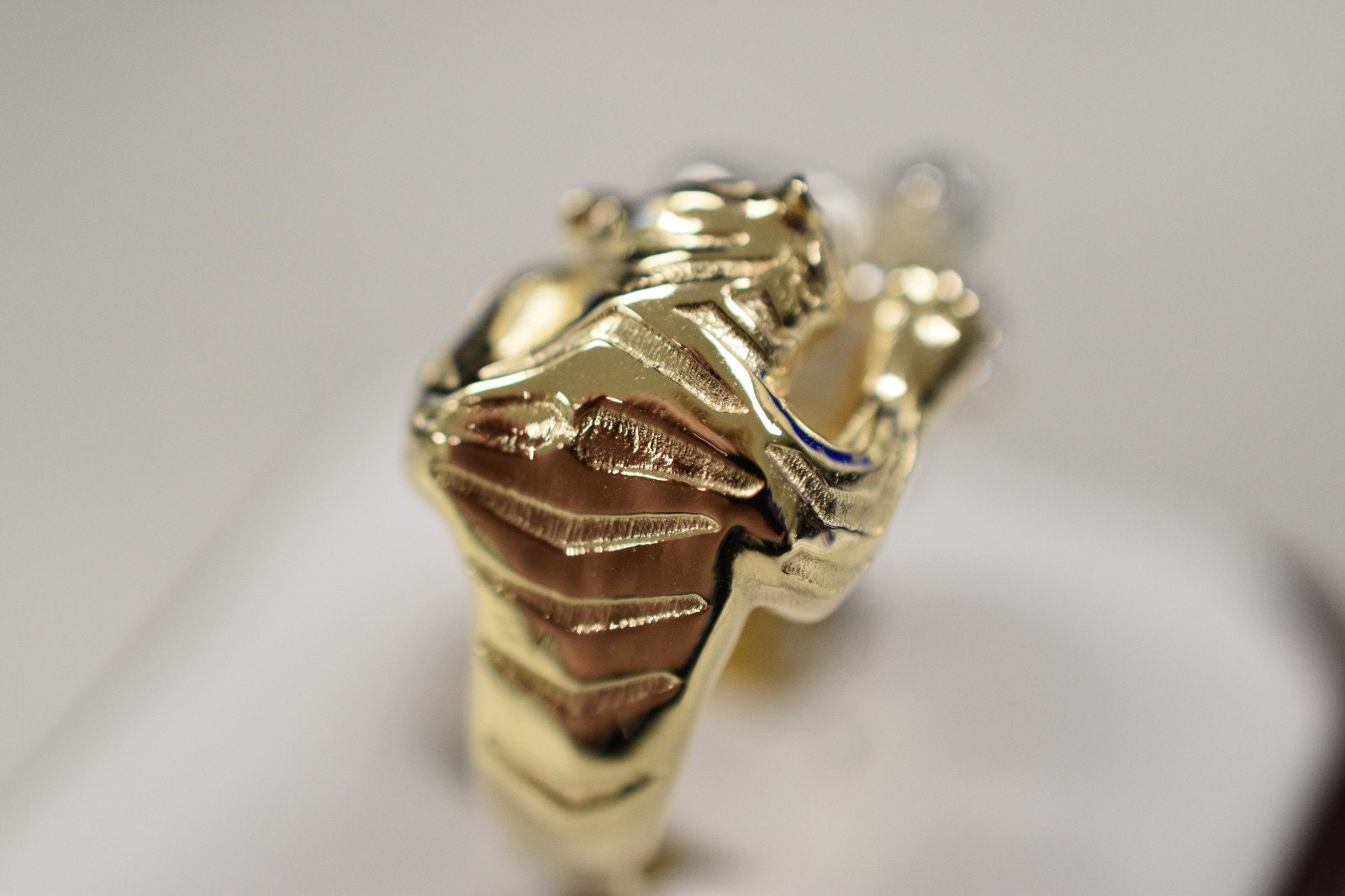 As this is a 2 tone ring, please let us know the color breakdown you prefer. Let us know what color gold (yellow, white, rose, green or plating combination) you would like for the snake and for the tiger.