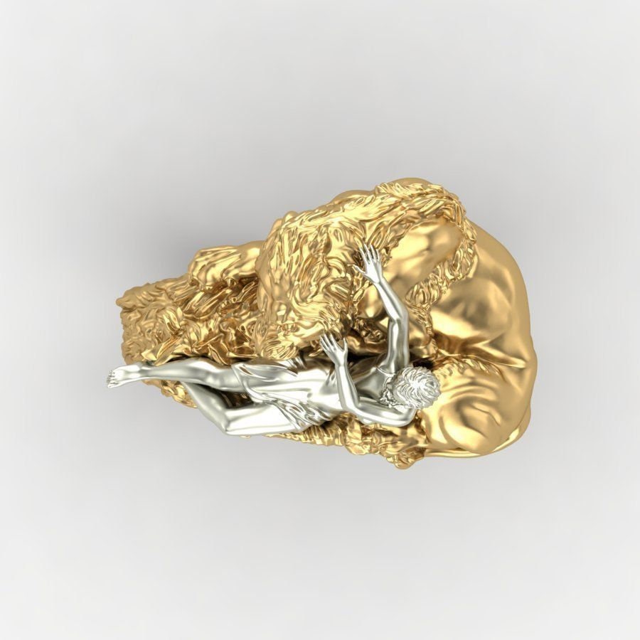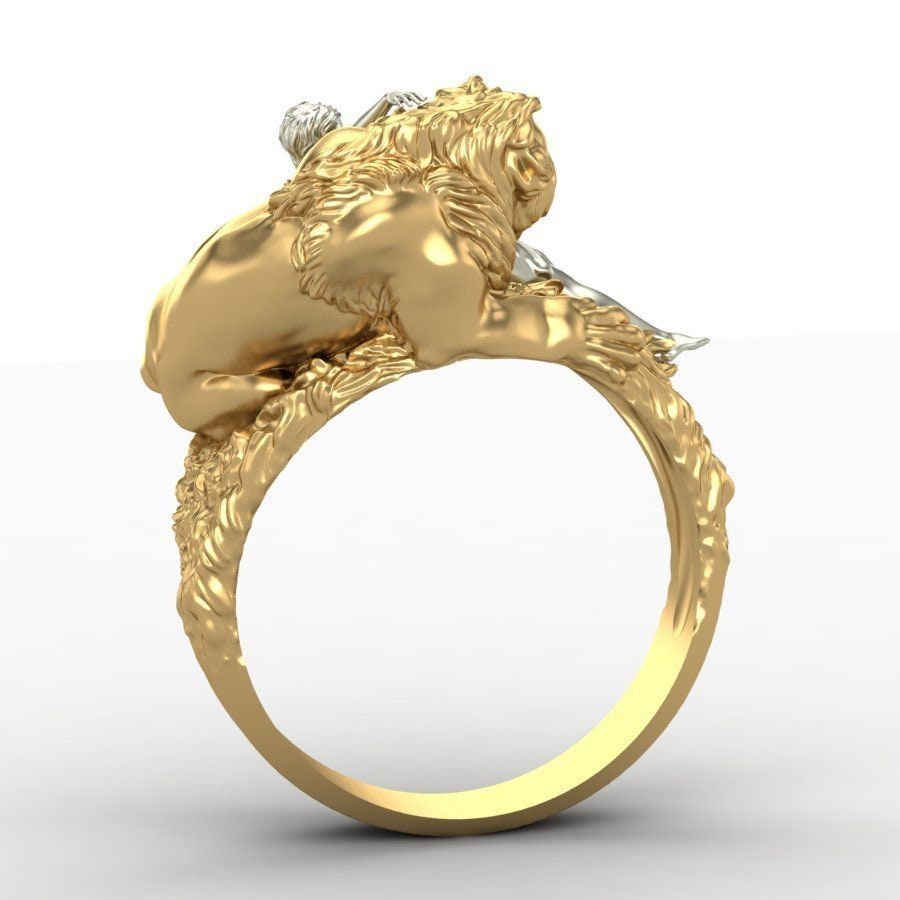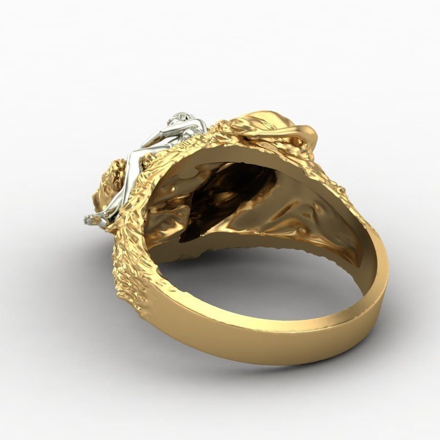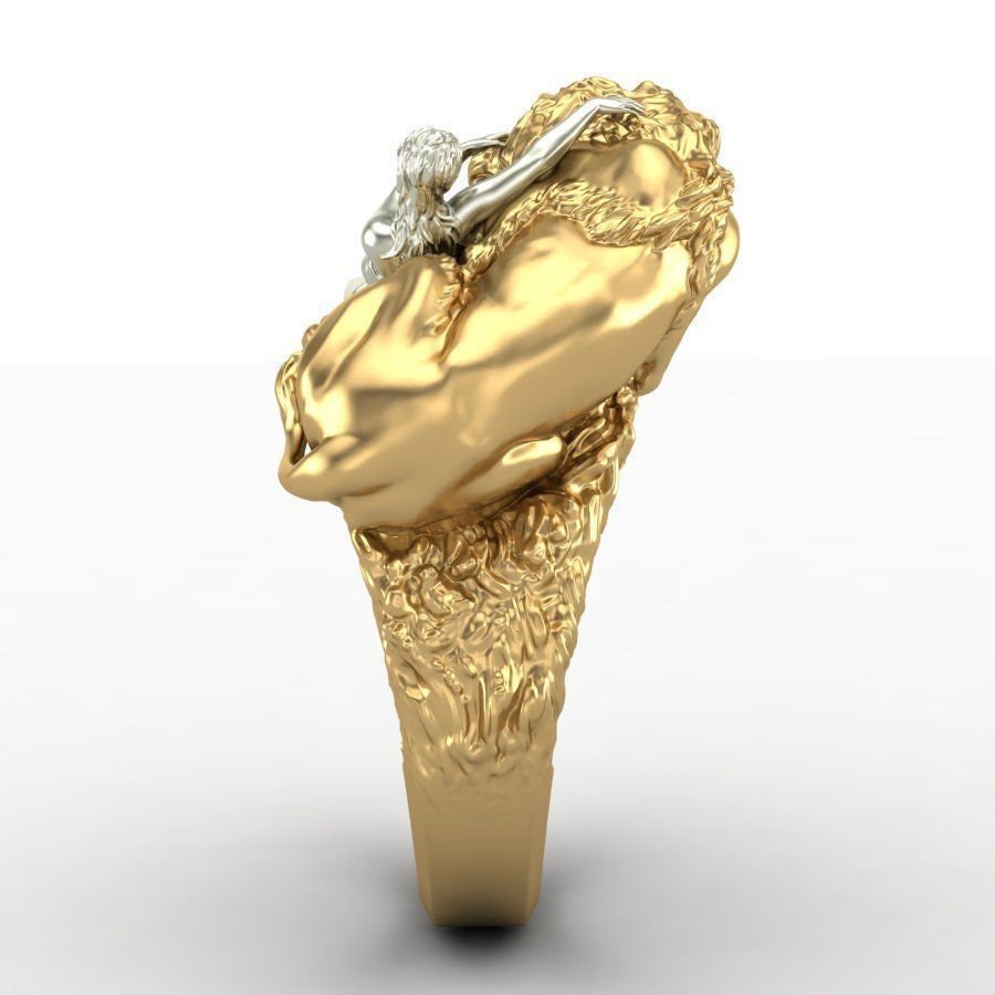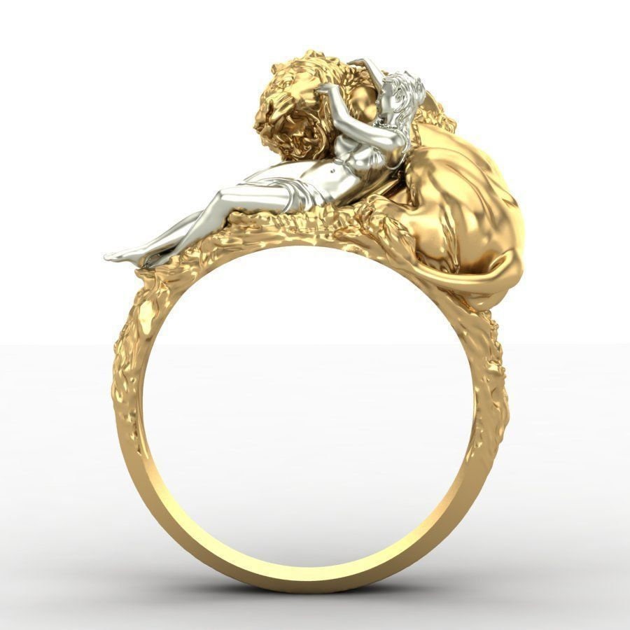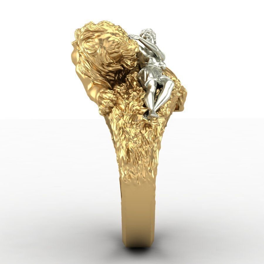 As this is a 2 tone ring, please let us know the color breakdown you prefer. Let us know what color gold (yellow, white, rose, green or plating combination) you would like for the lion and the women.