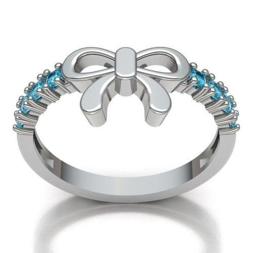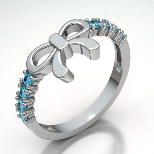 Bethany Bow Ring *Aquamarine With 10k/14k/18k White, Yellow, Rose Green Gold, Gold Plated & Silver* Fashion Knot Love Heart Girl Women Gift