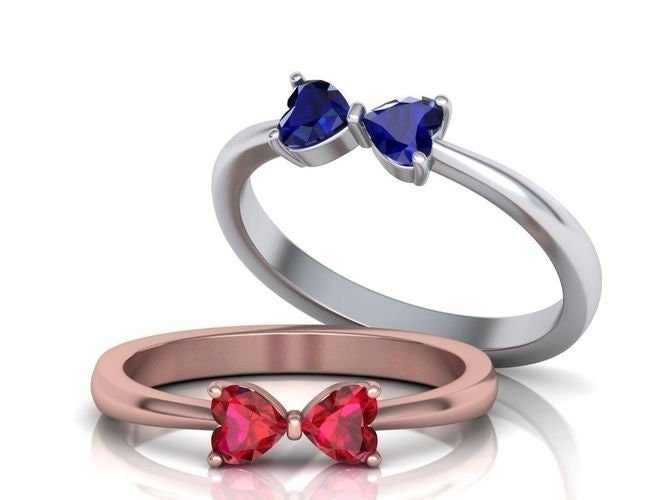 Brittany Bow Ring *Synthetic Stones With 10k/14k/18k White, Yellow, Rose Green Gold, Gold Plated & Silver* Heart Love Engagement Women Gift