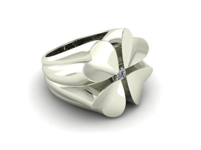 Four Leaf Heart Ring *Moissanite With 10k/14k/18k White, Yellow, Rose, Green Gold, Gold Plated & Silver* Clover Flower Luck Men Women Thumb