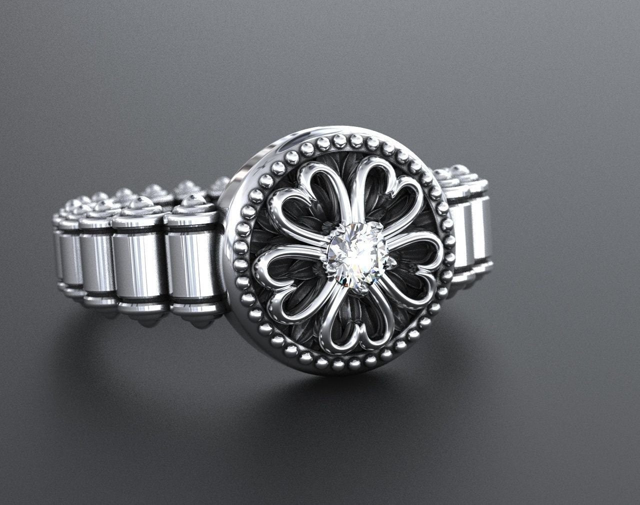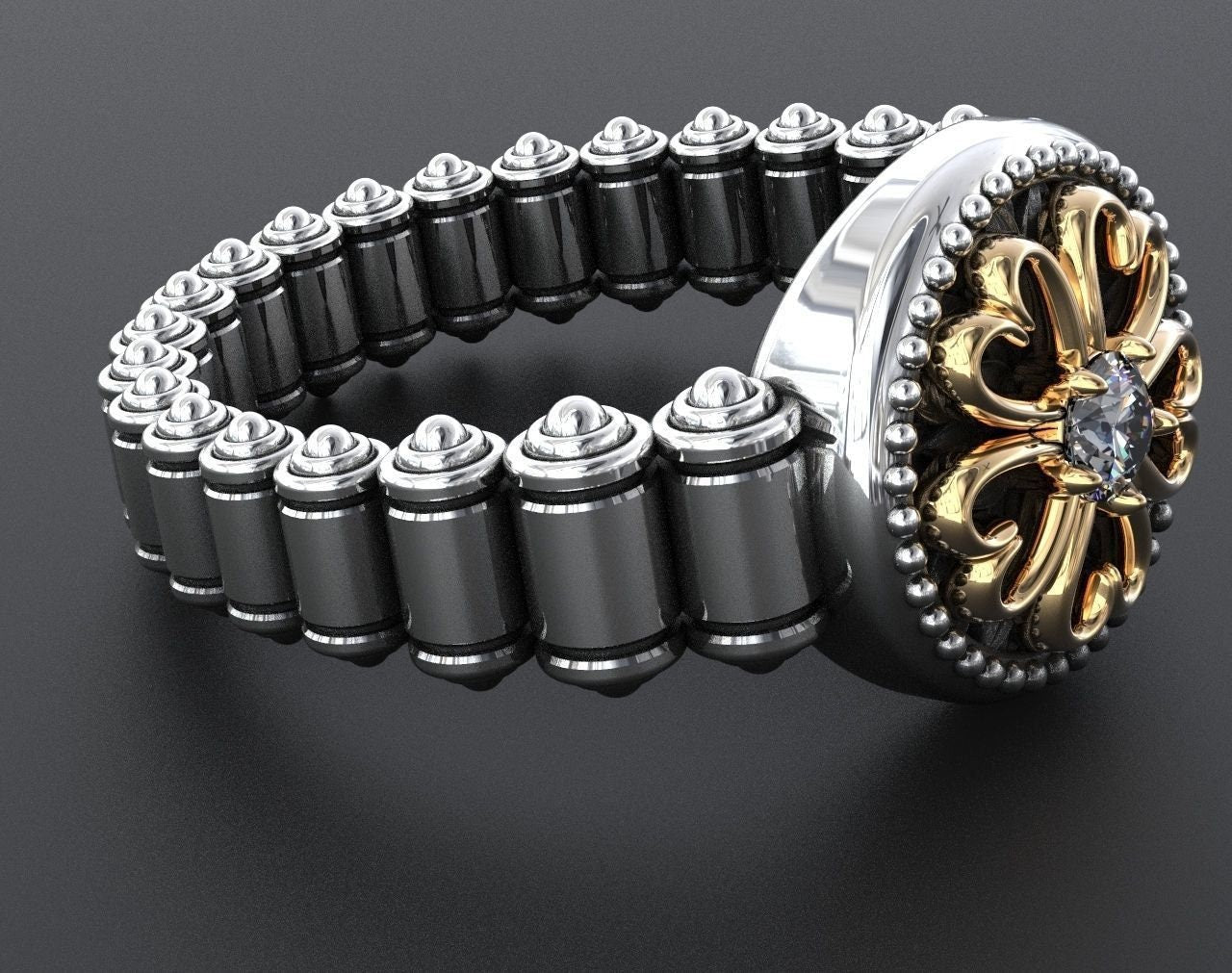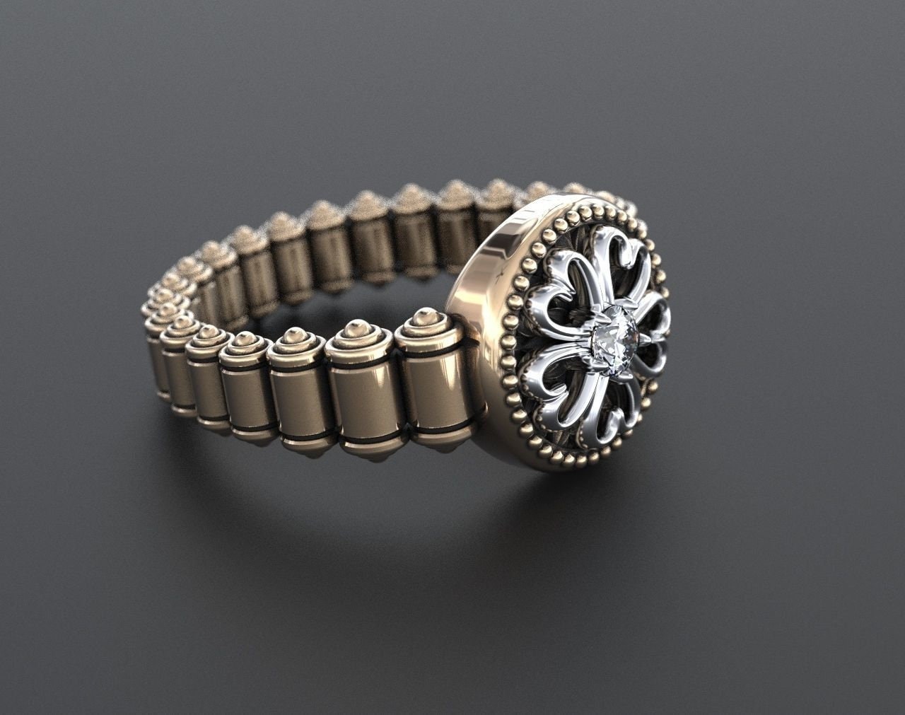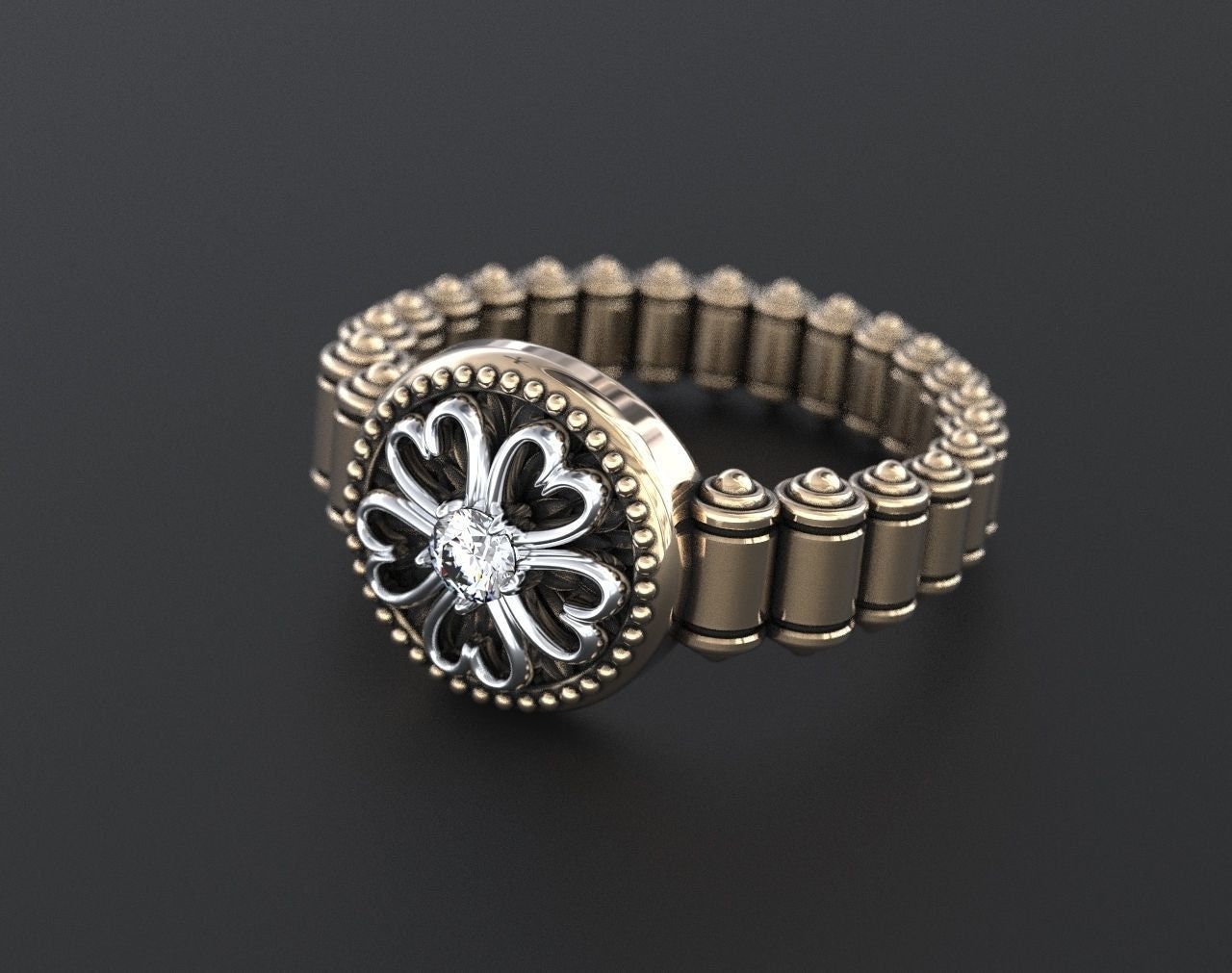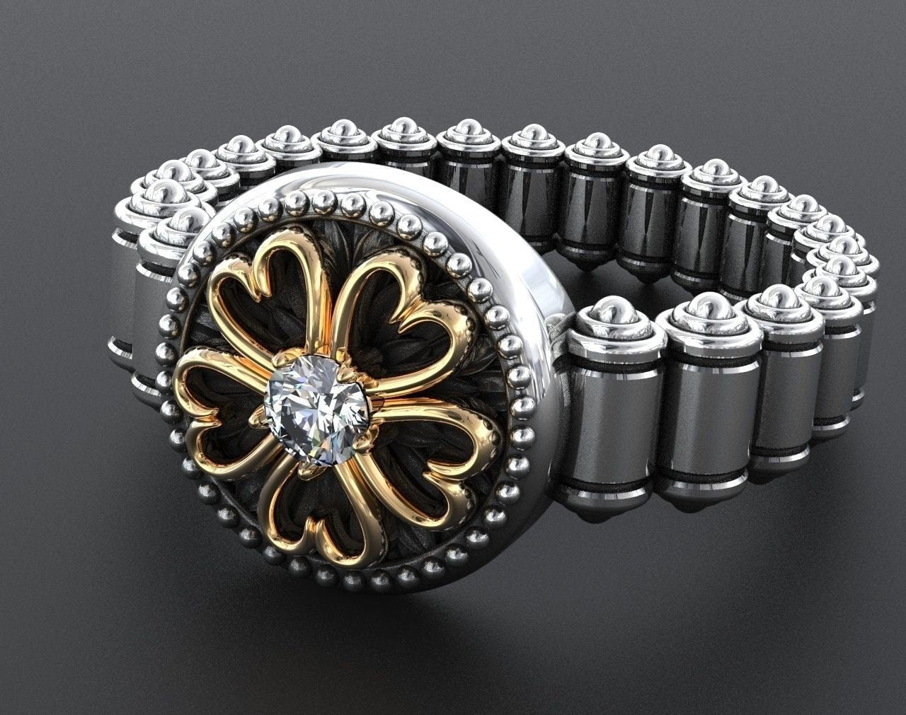 Sold OutAs this is a 2 tone ring, please let us know the color breakdown you prefer. Let us know what color gold (yellow, white, rose, green or plating combination) you would like for hearts and the ring.