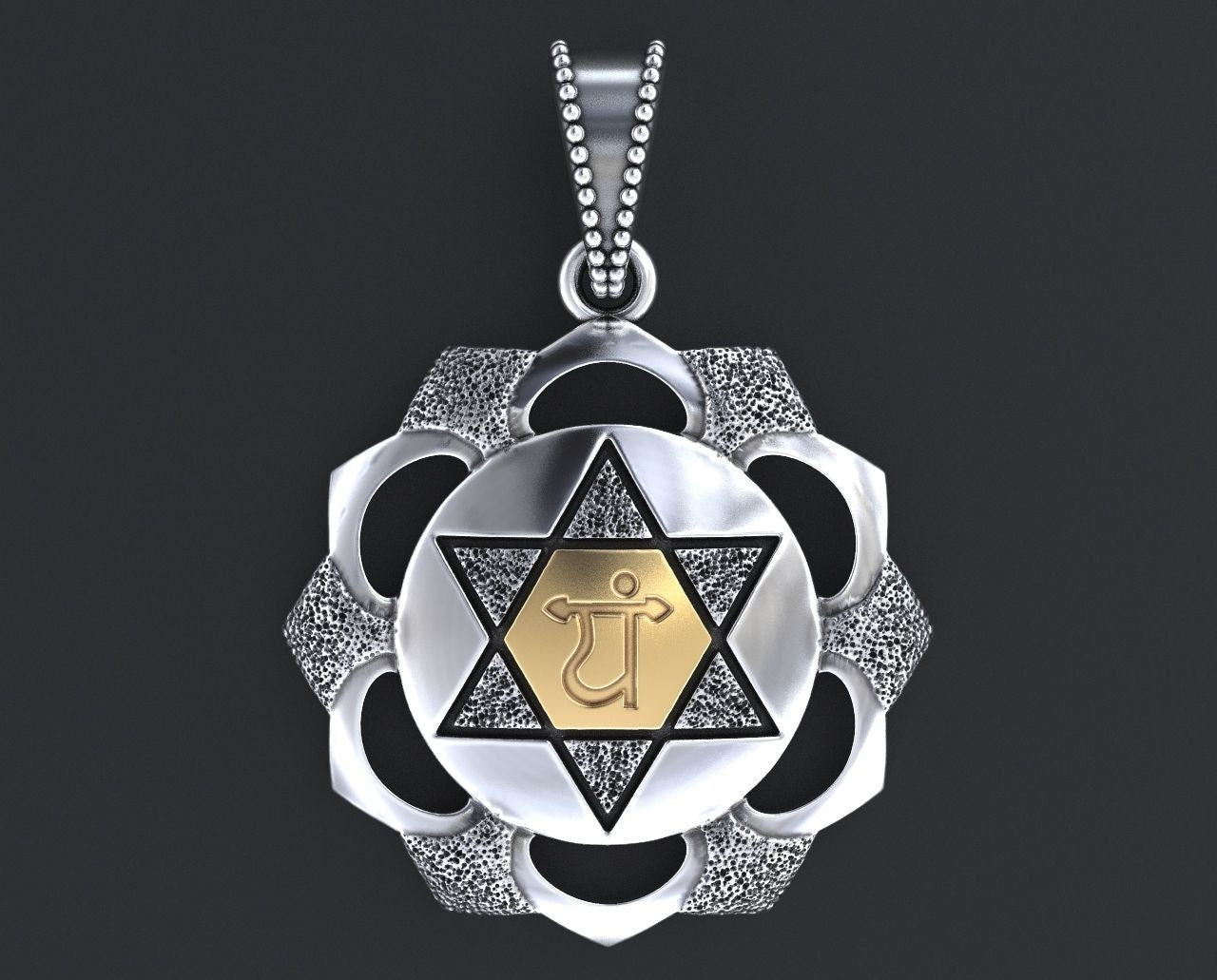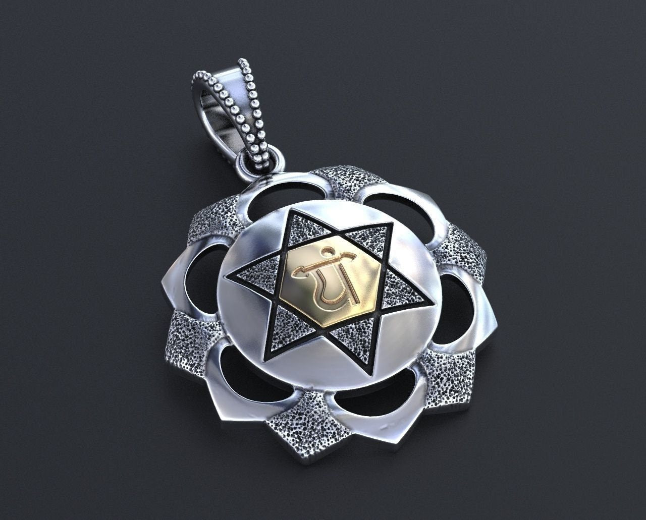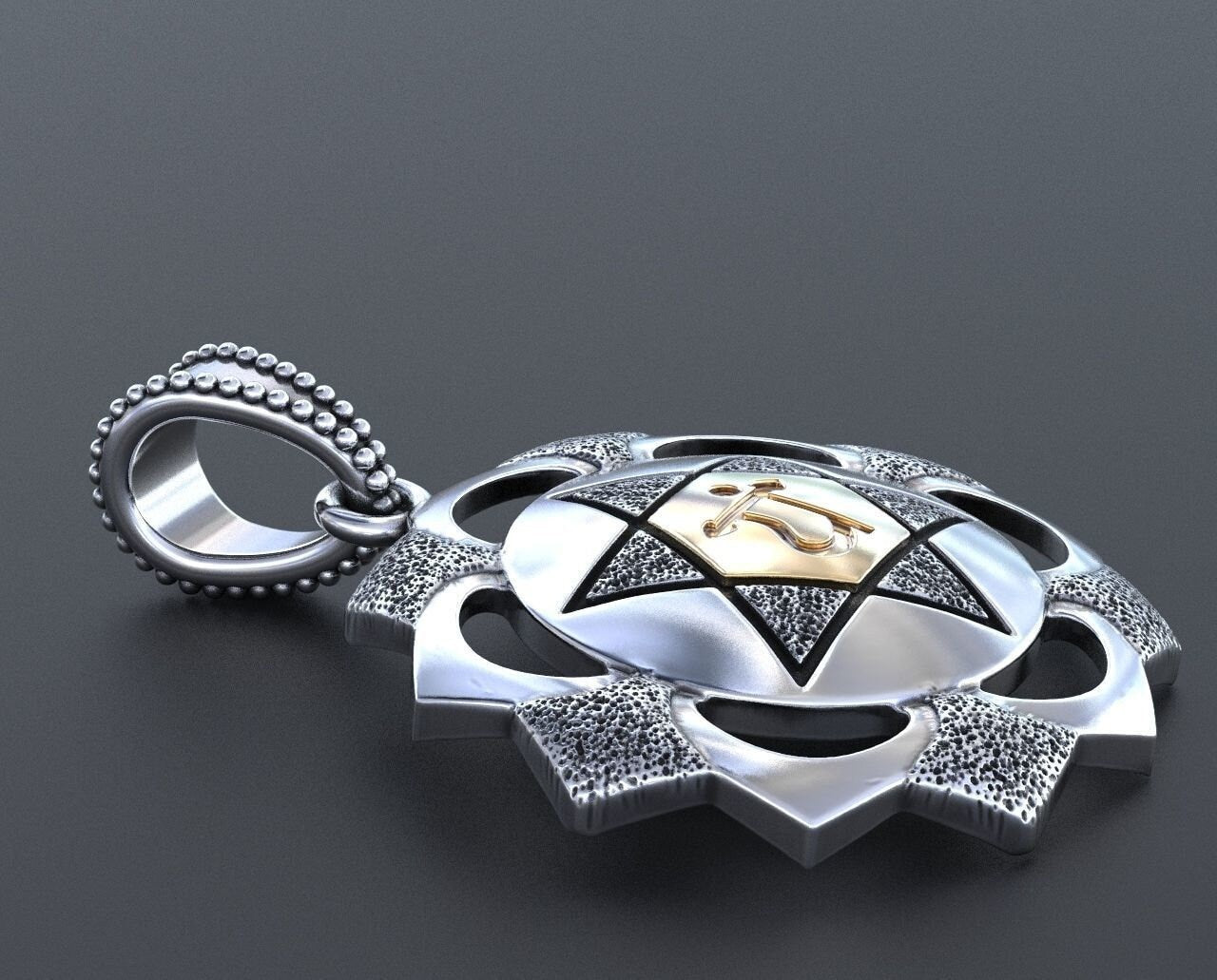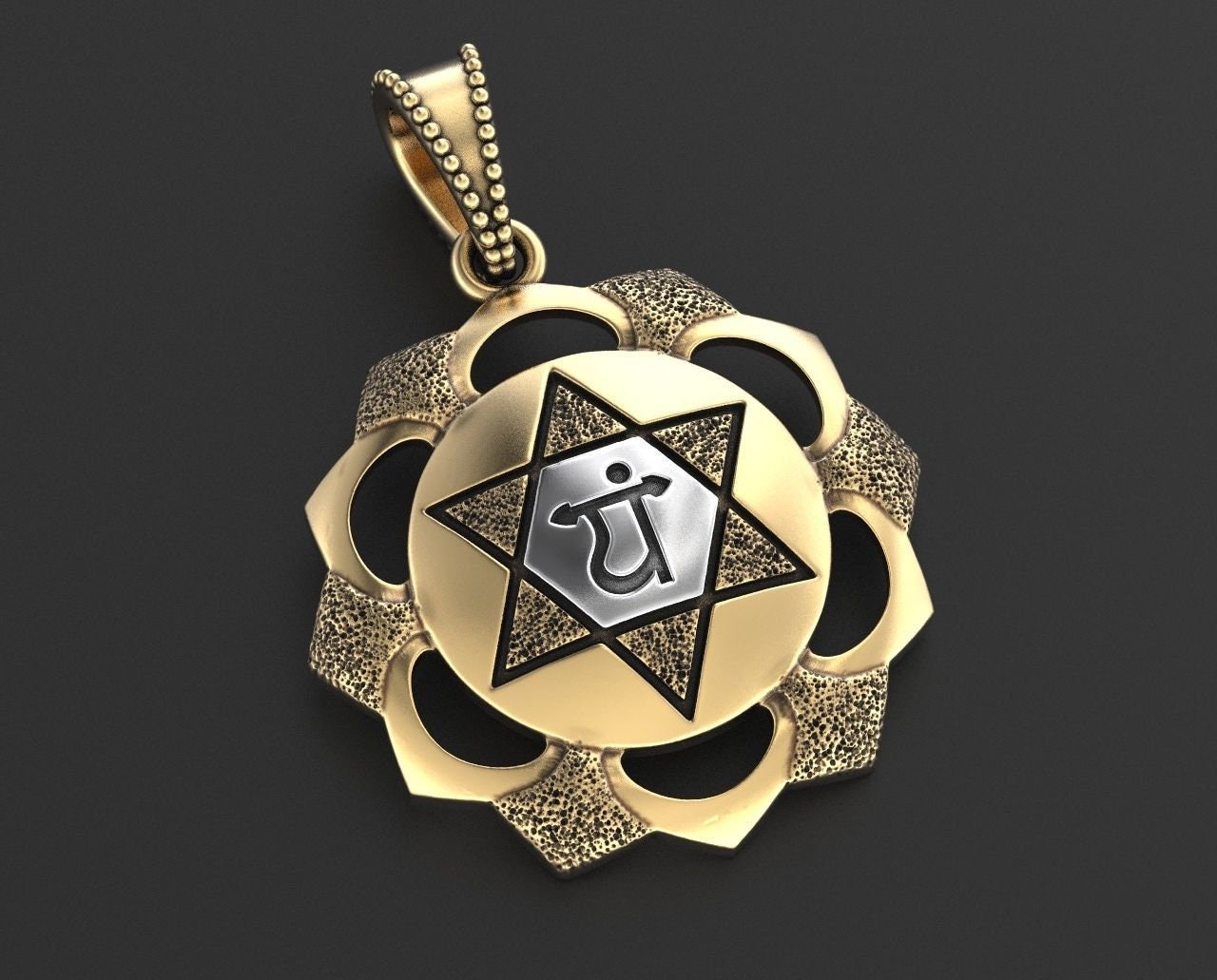 As this is a 2 tone pendant, please let us know the color breakdown you prefer. Let us know what color gold(yellow, white, rose, green or plating combination) you would like for the inner portion and the outer portion