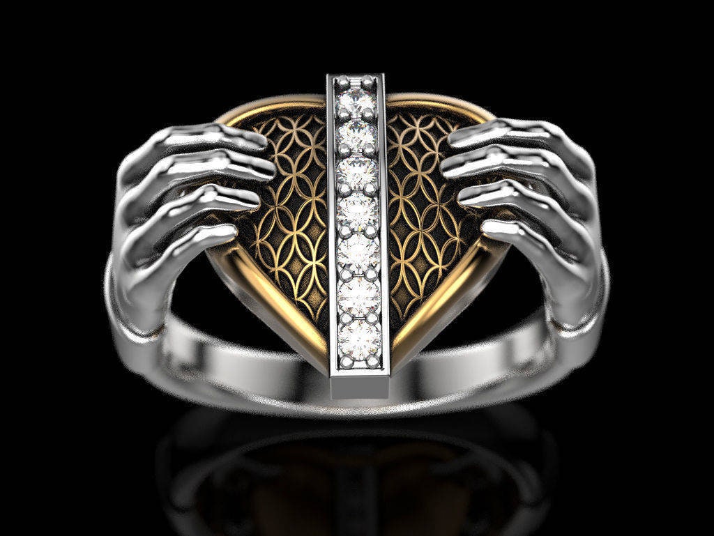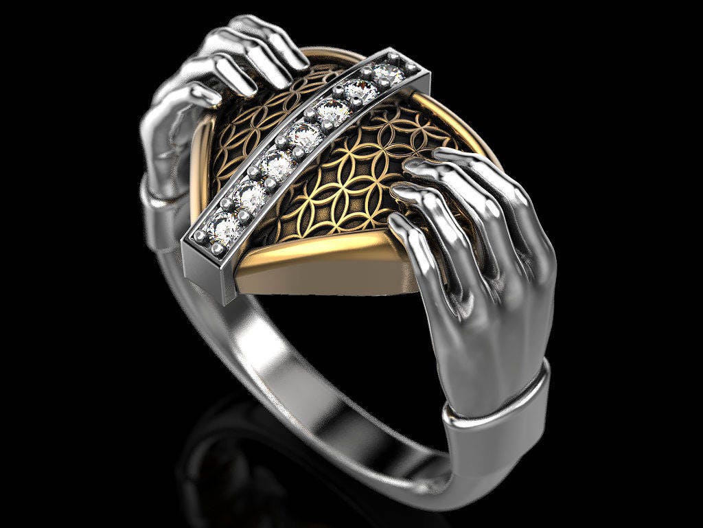 Protect My Heart Ring *Moissanite With 10k/14k/18k White, Yellow, Rose, Green Gold, Gold Plated & Silver* Hands Love Men Women Thumb Gift