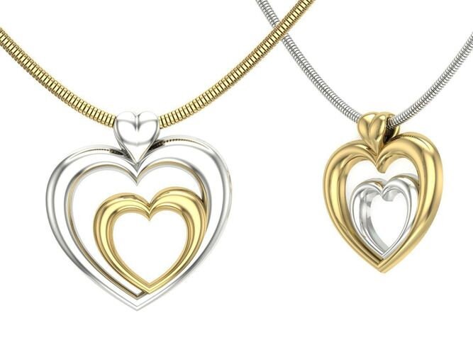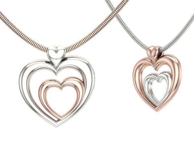 As this is a 2 tone pendant, please let us know the color breakdown you prefer. Let us know what color gold (yellow, white, rose, green or plating combination) you would like for the large heart and the small heart
