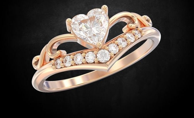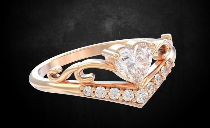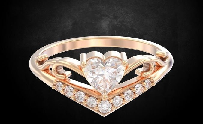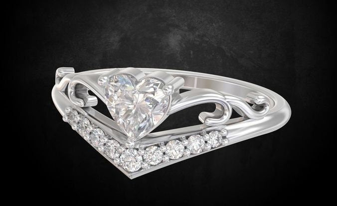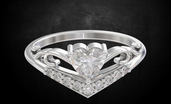 Tonia Engagement Ring *0.06 Carat Moissanite With 10k/14k/18k White, Yellow, Rose Green, Gold Gold Plated & Silver* Wedding Ring Band Heart