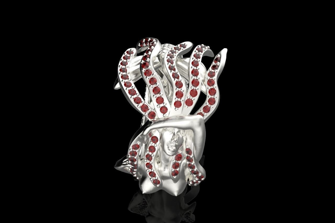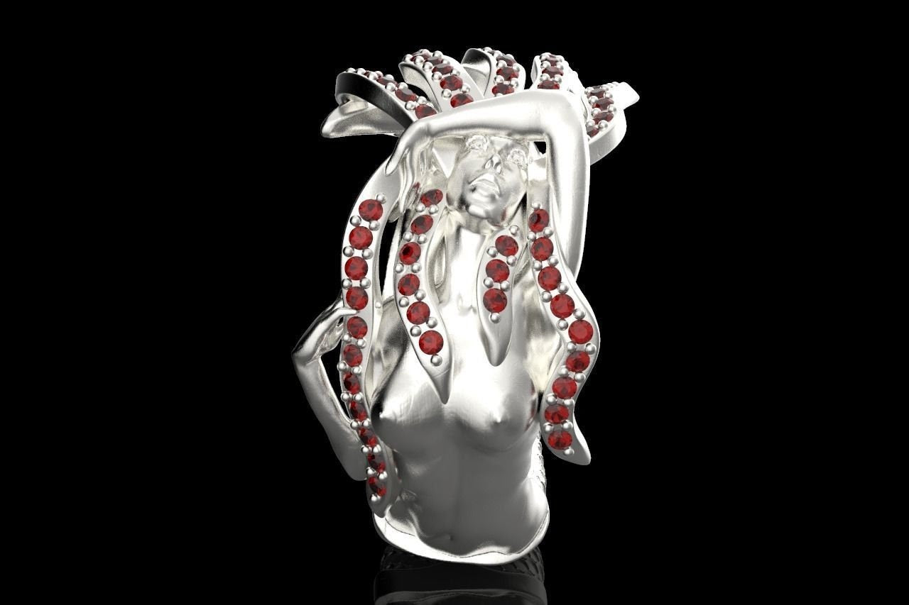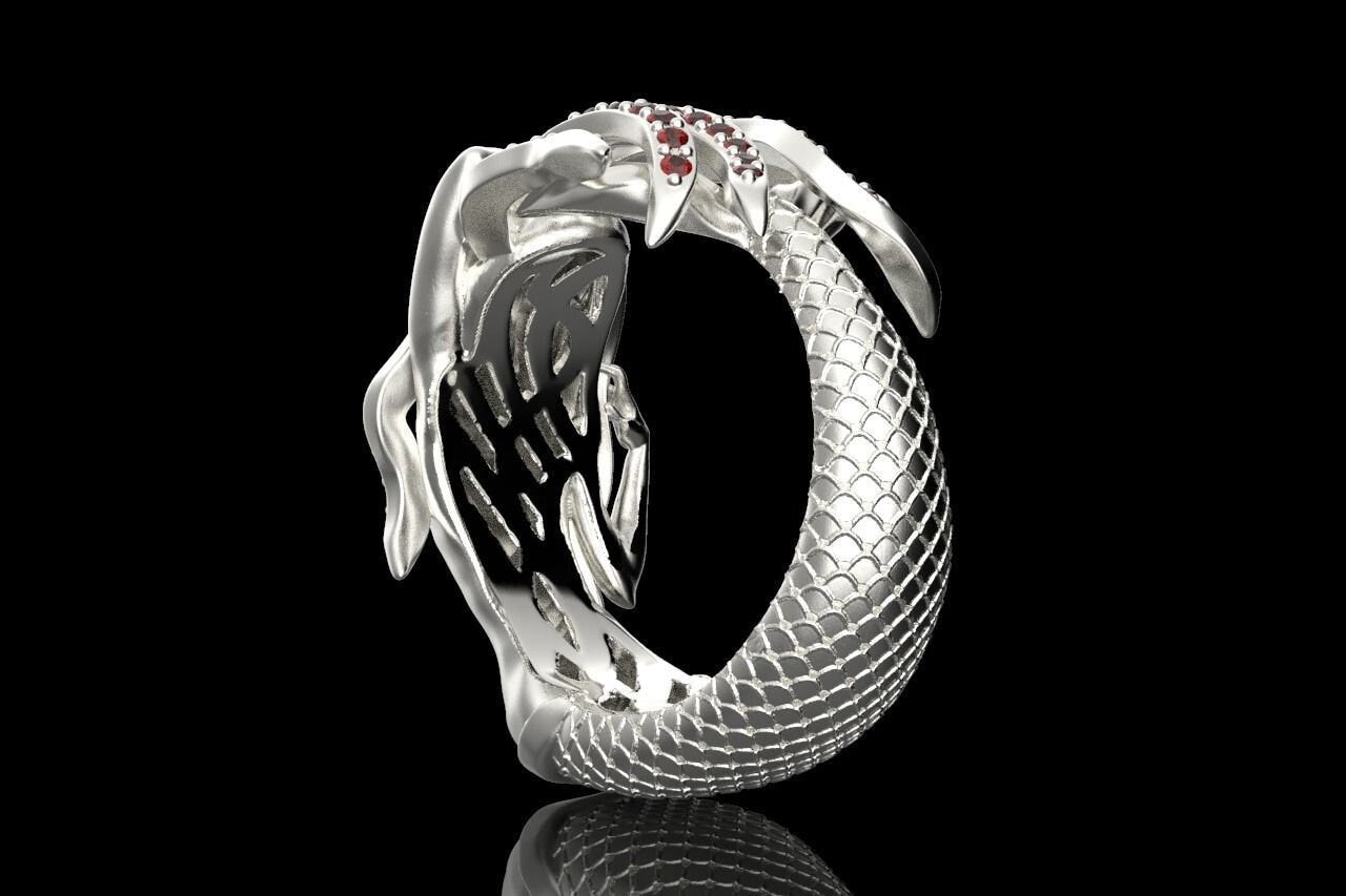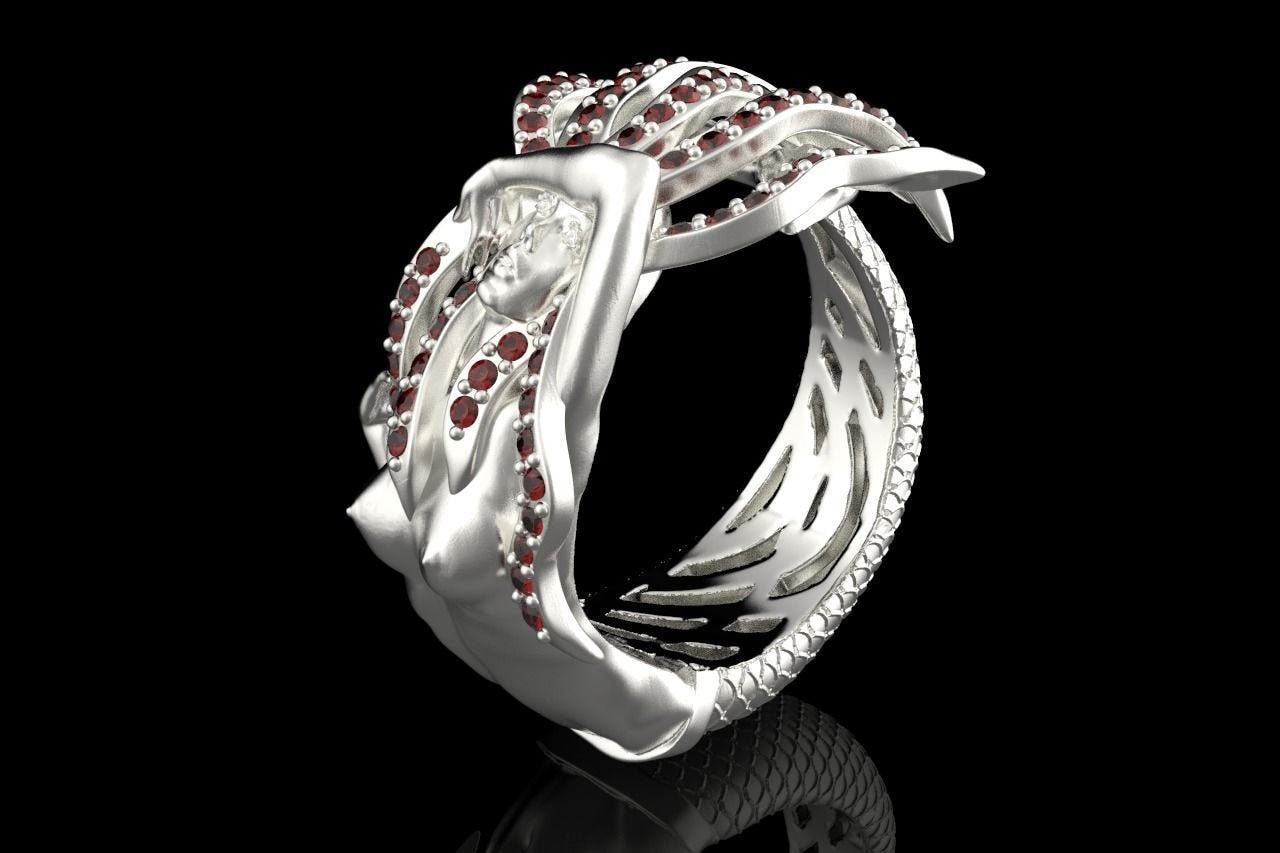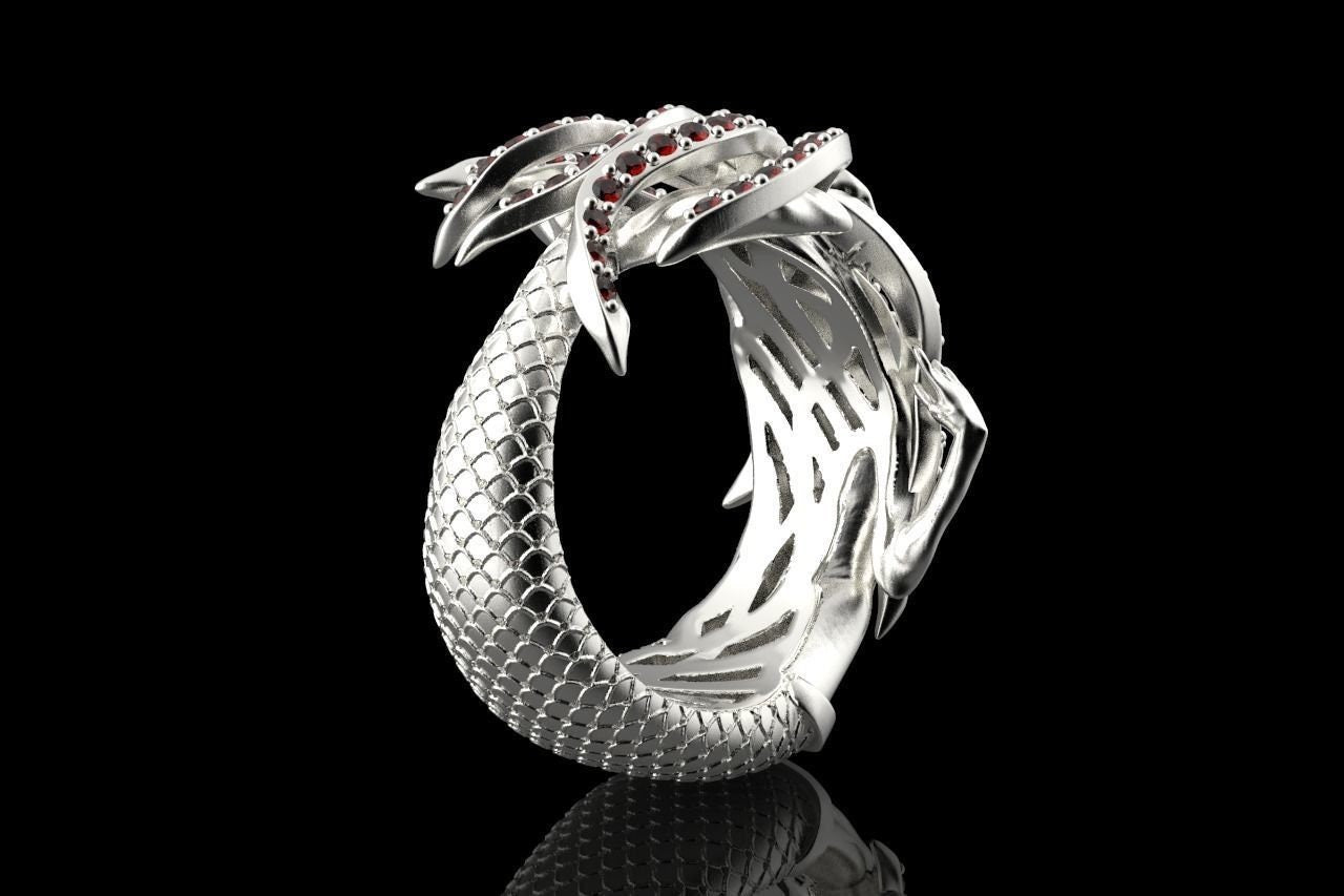 Aquata Mermaid Ring *Synthetic Ruby With 10k/14k/18k White, Yellow, Rose, Green Gold, Gold Plated & Silver* Fantasy Mythical Women Woman