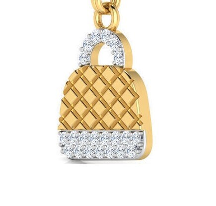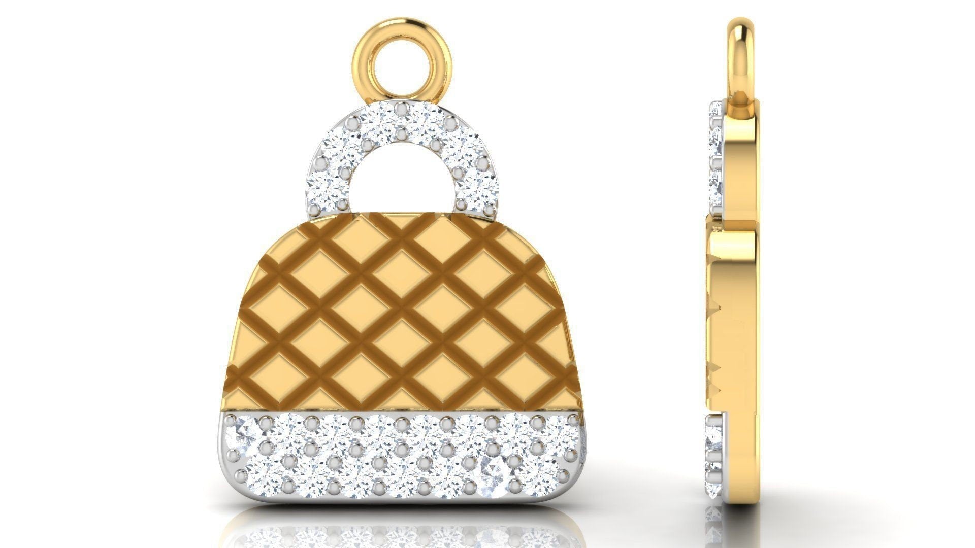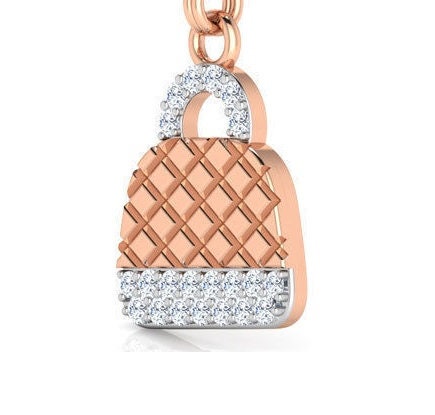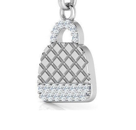 Fancy Purse Pendant *Moissanite With 10k/14k/18k White, Yellow, Rose, Green Gold, Gold Plated & Silver* Handbag Women Girl Charm Necklace