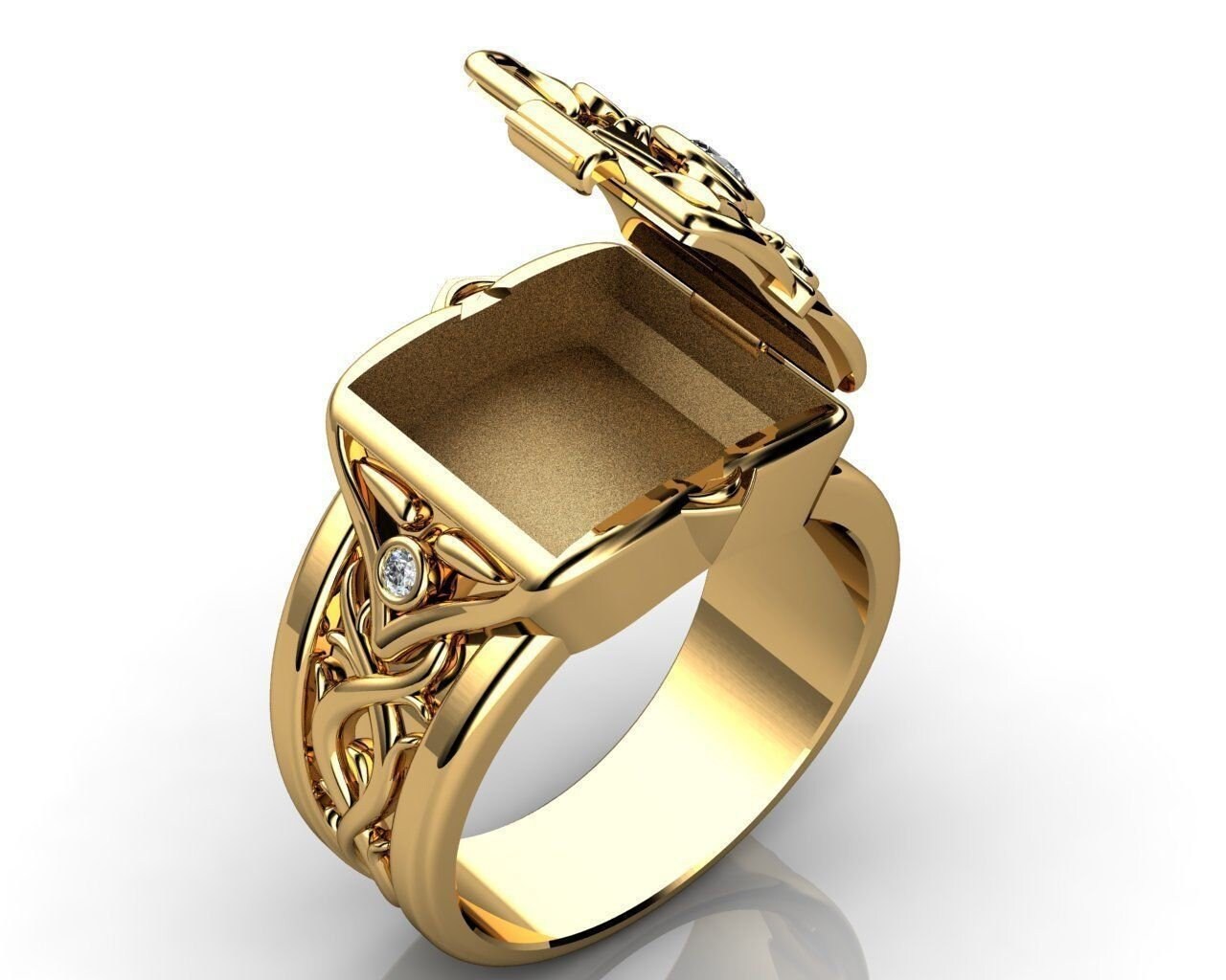Hidden Treasure Compartment Ring *Moissanite With 10k/14k/18k White, Yellow Rose Green Gold, Gold Plated & Silver* Secret Storage Pill Drug