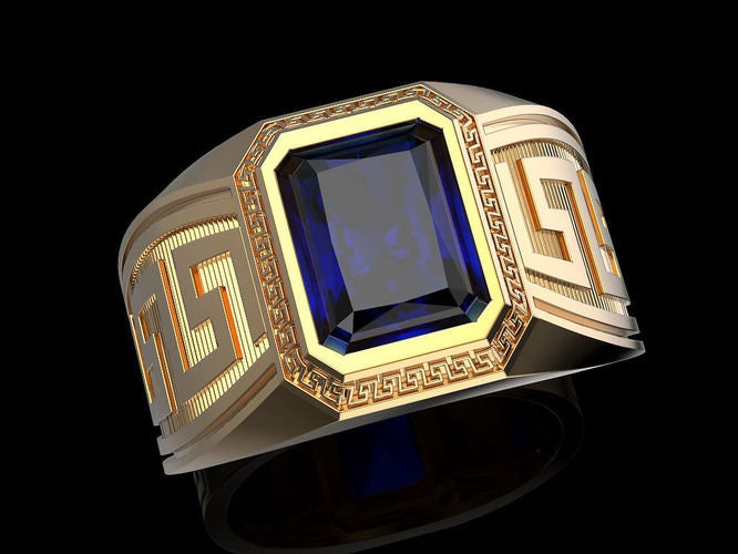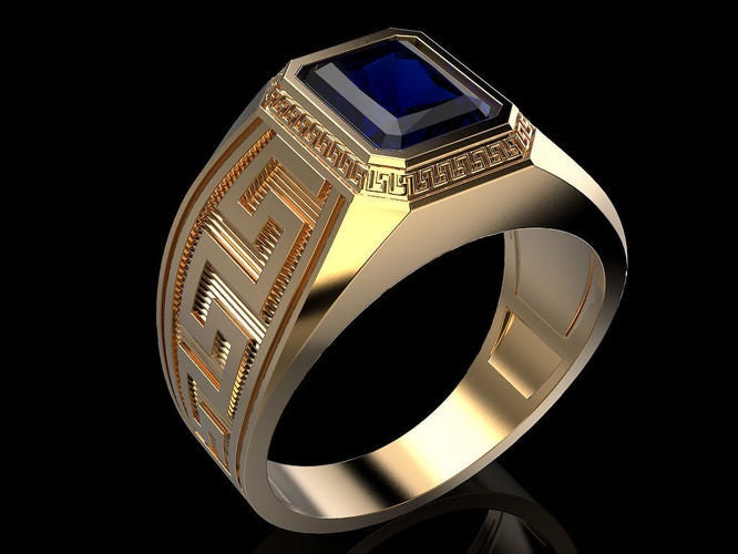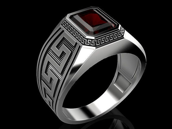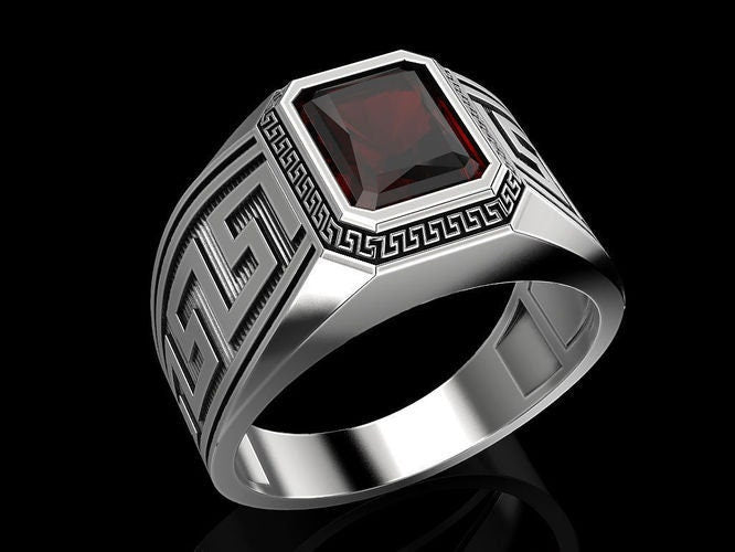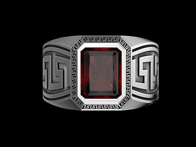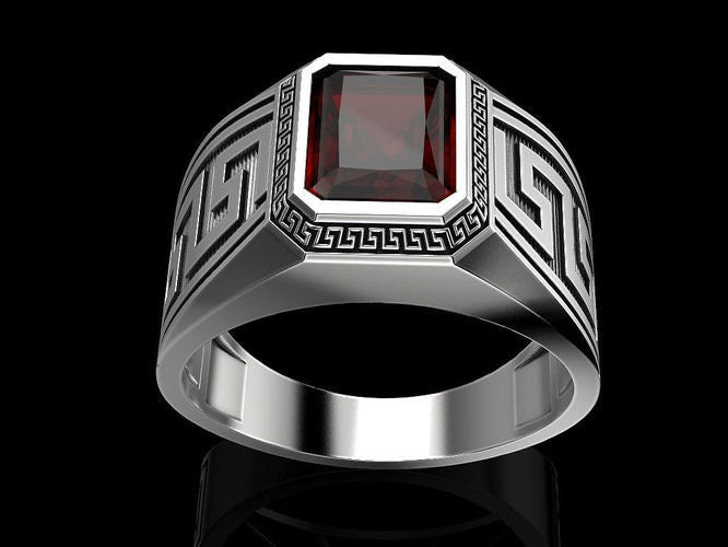 Maximus Greek Ring *3.90 Carat Synthetic Ruby With 10k/14k/18k White, Yellow, Rose Green Gold, Gold Plated & Silver* Greece Thumb Pinky Men