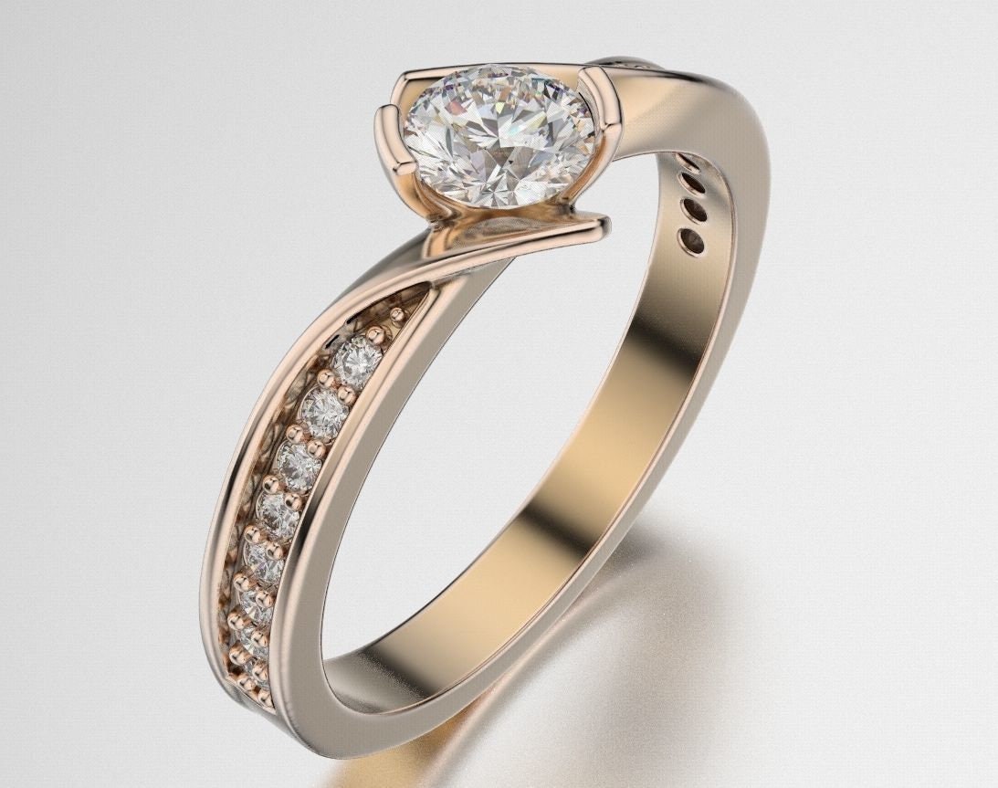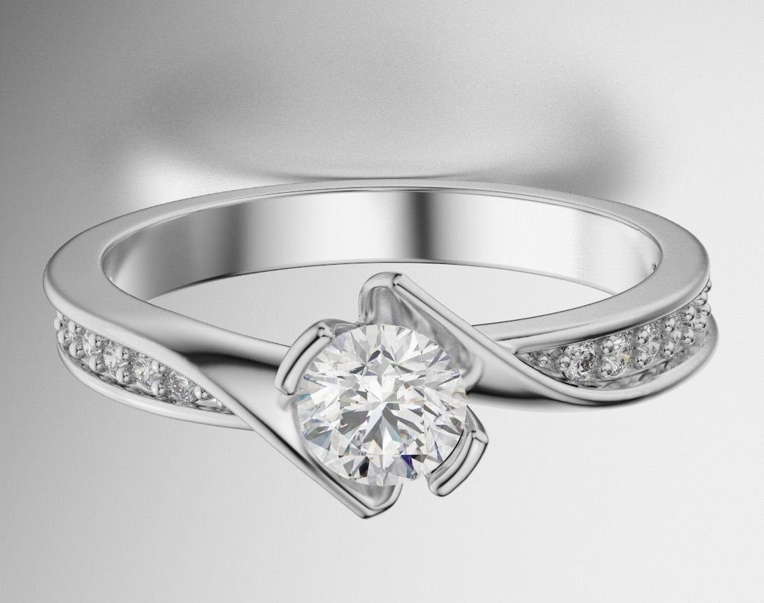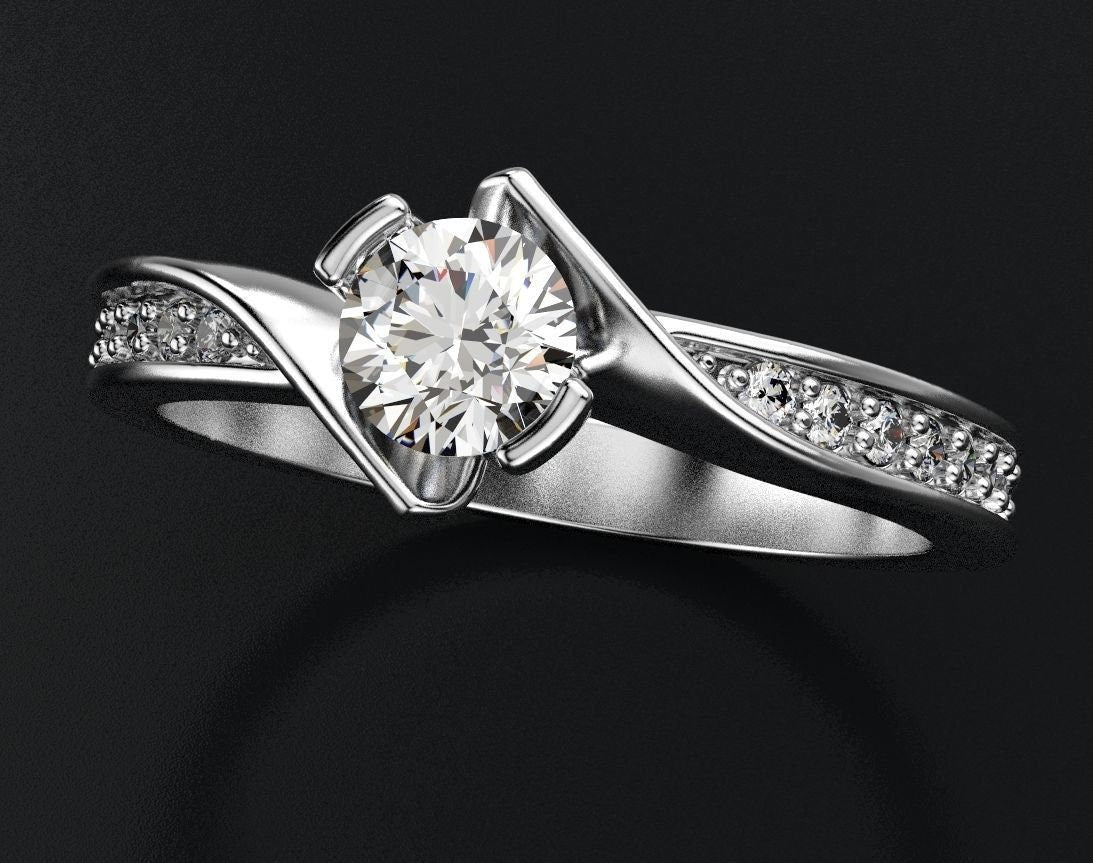 Scarlett Engagement Ring *0.50 Carat Moissanite With 10k/14k/18k White, Yellow, Rose, Green Gold, Gold Plated & Silver* Wedding Ring Women