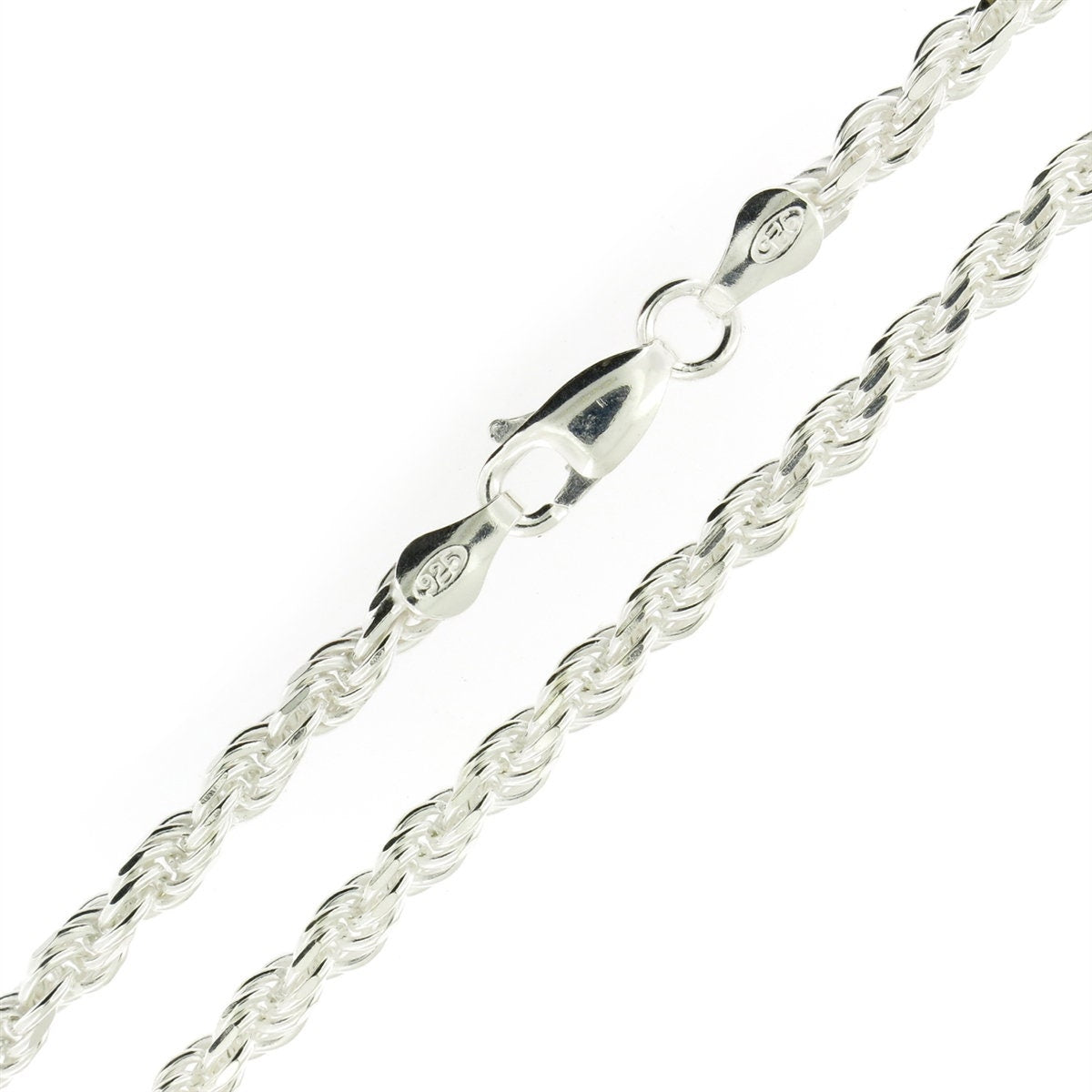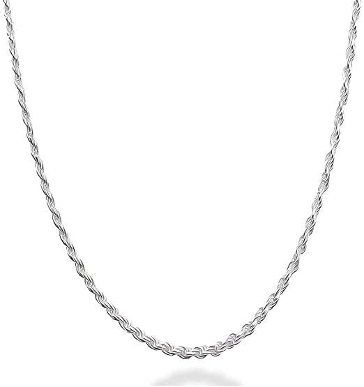 Solid Diamond Cut Rope Chain Made With Sterling Silver - Made For Men, Women, Children - Perfect For Pendants, Charms and Necklaces