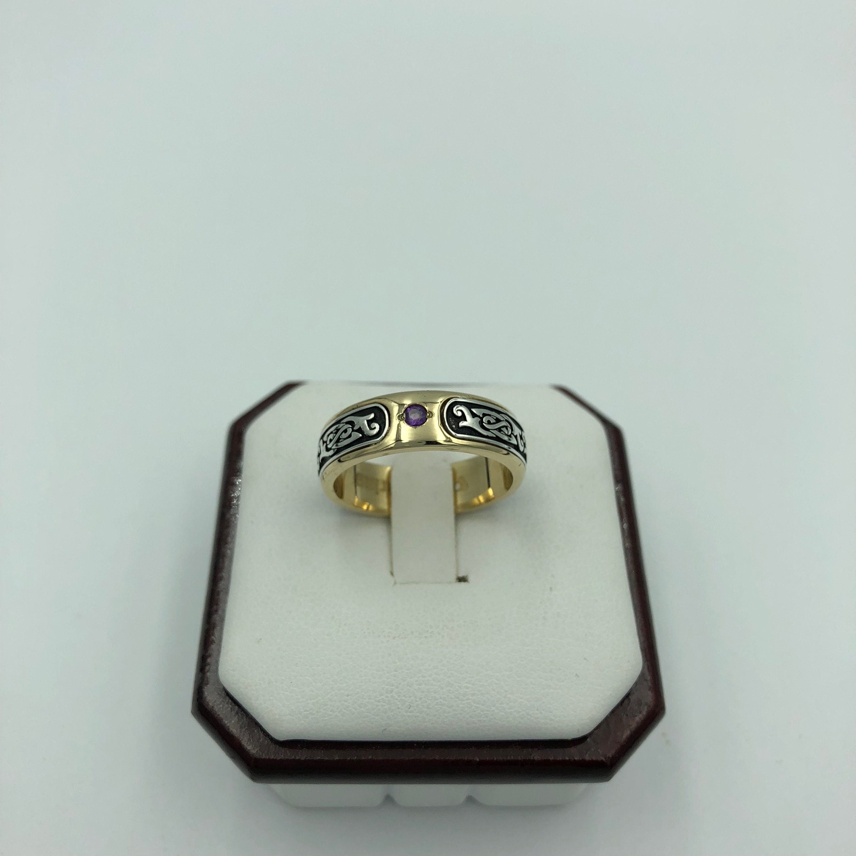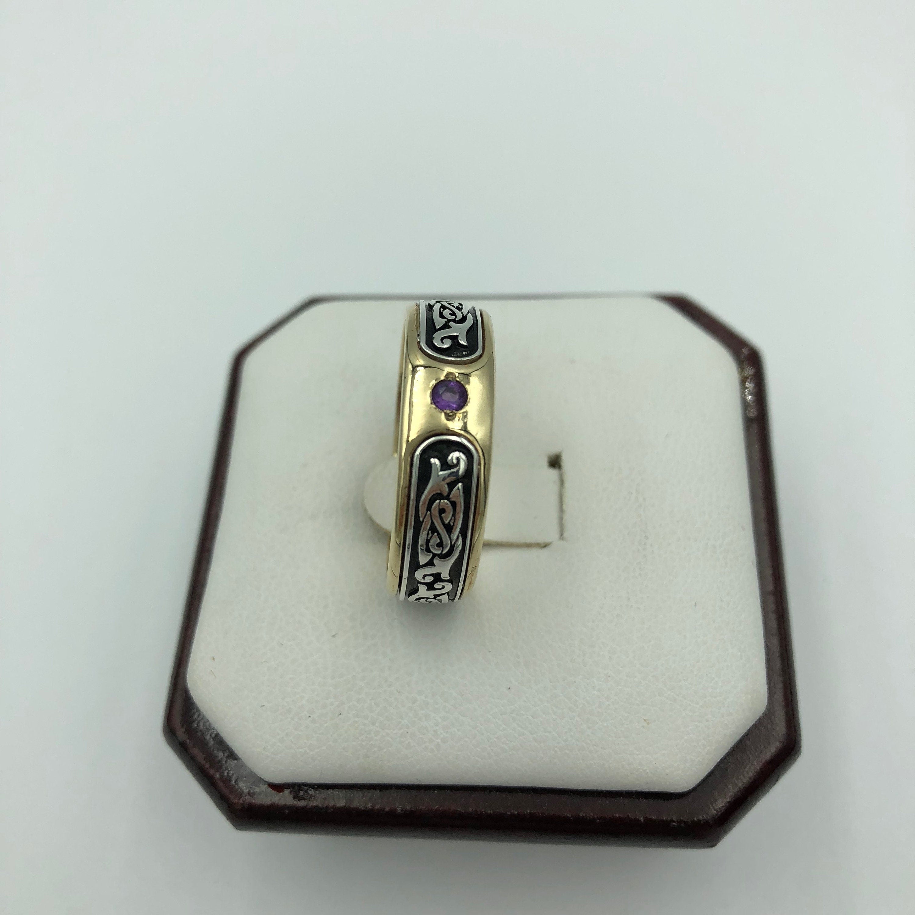 Thaddeus Vintage Ring *Synthetic Stone With 10k/14k/18k White, Yellow, Rose, Green Gold, Gold Plated & Silver* Wedding Band Thumb Men Gift