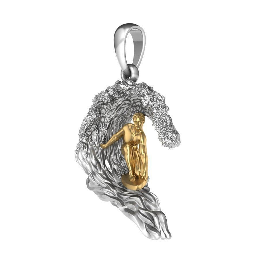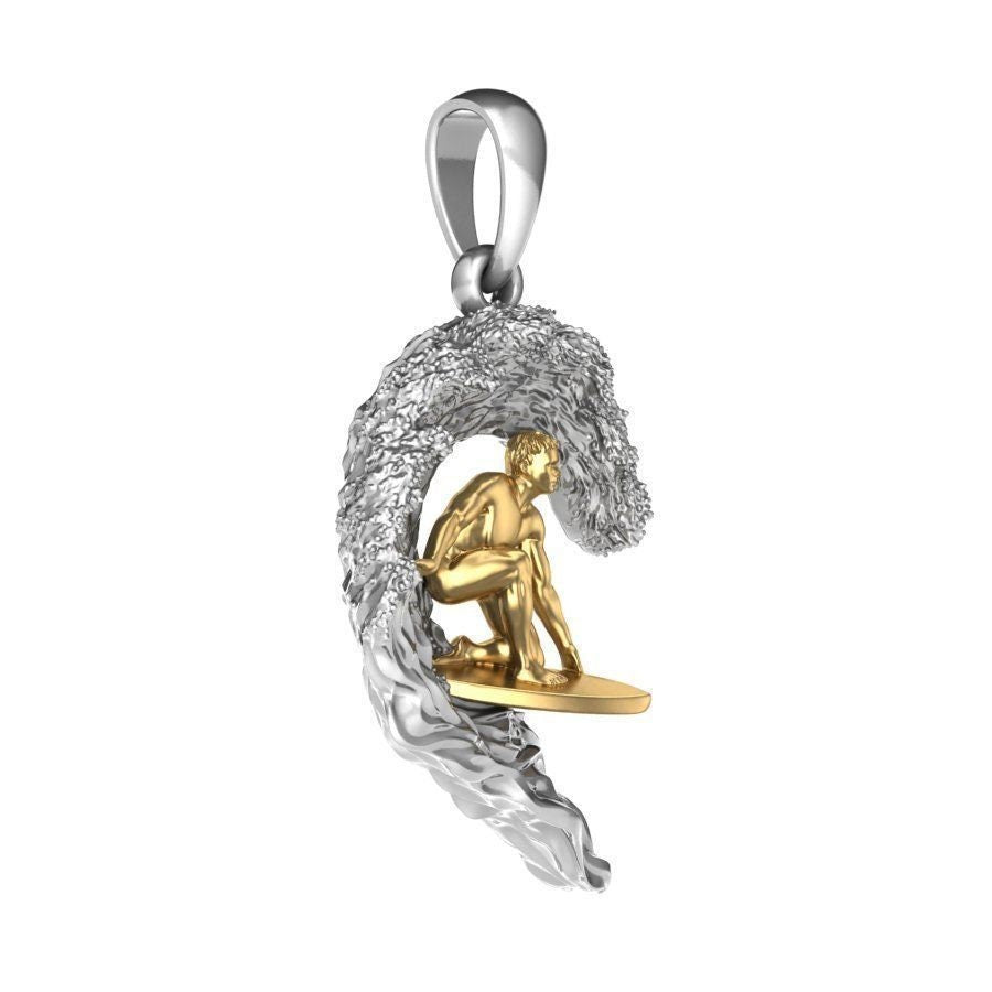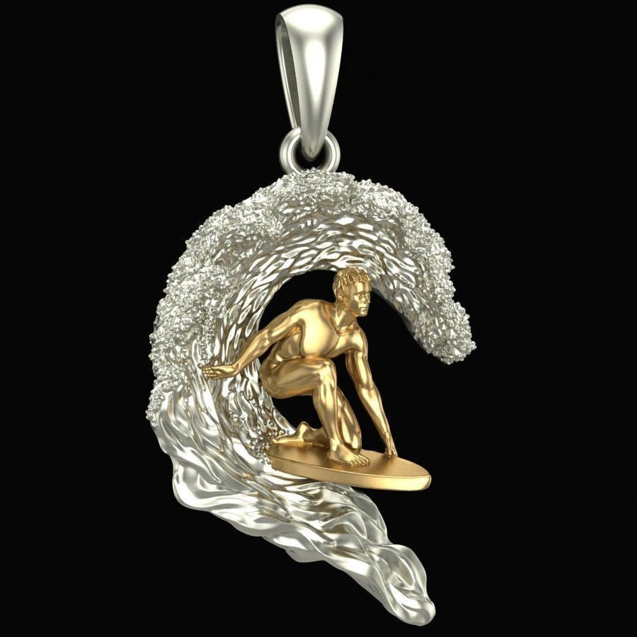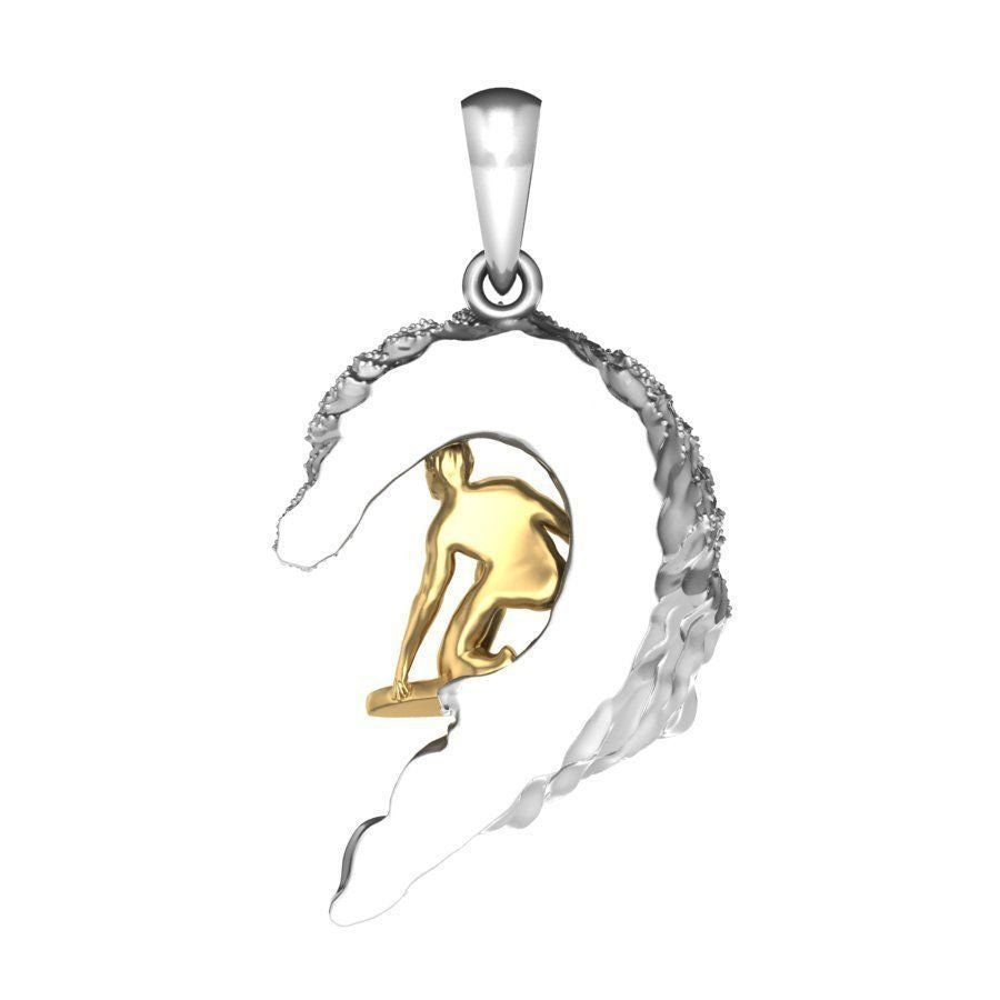 As this is a 2 tone pendant, please let us know the color breakdown you prefer. Let us know what color gold (yellow, white, rose, green or plating combination) you would like for the surfer and the water.