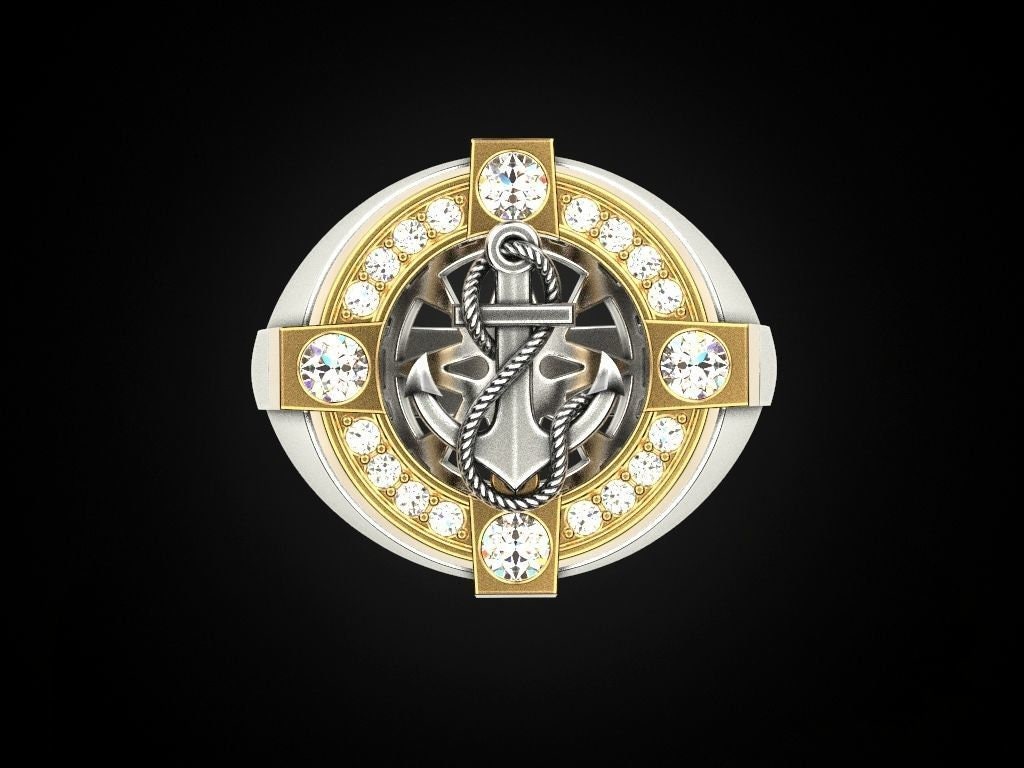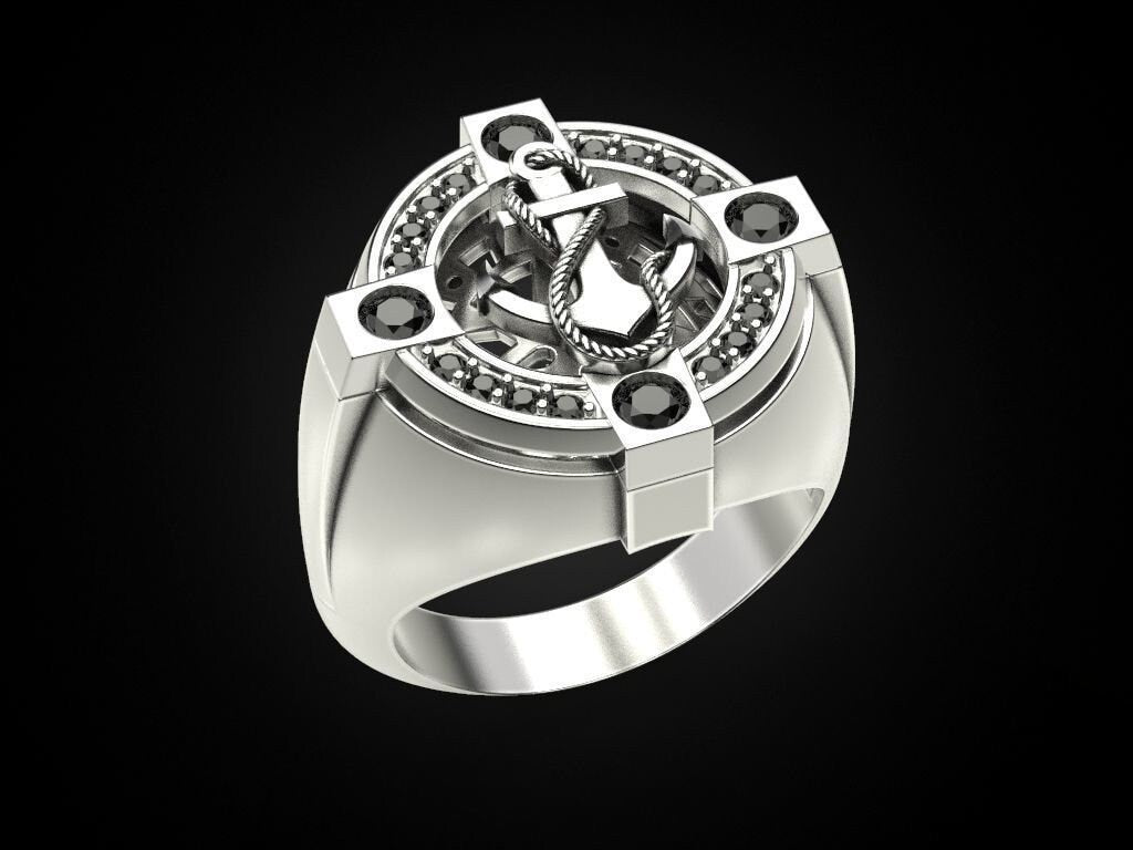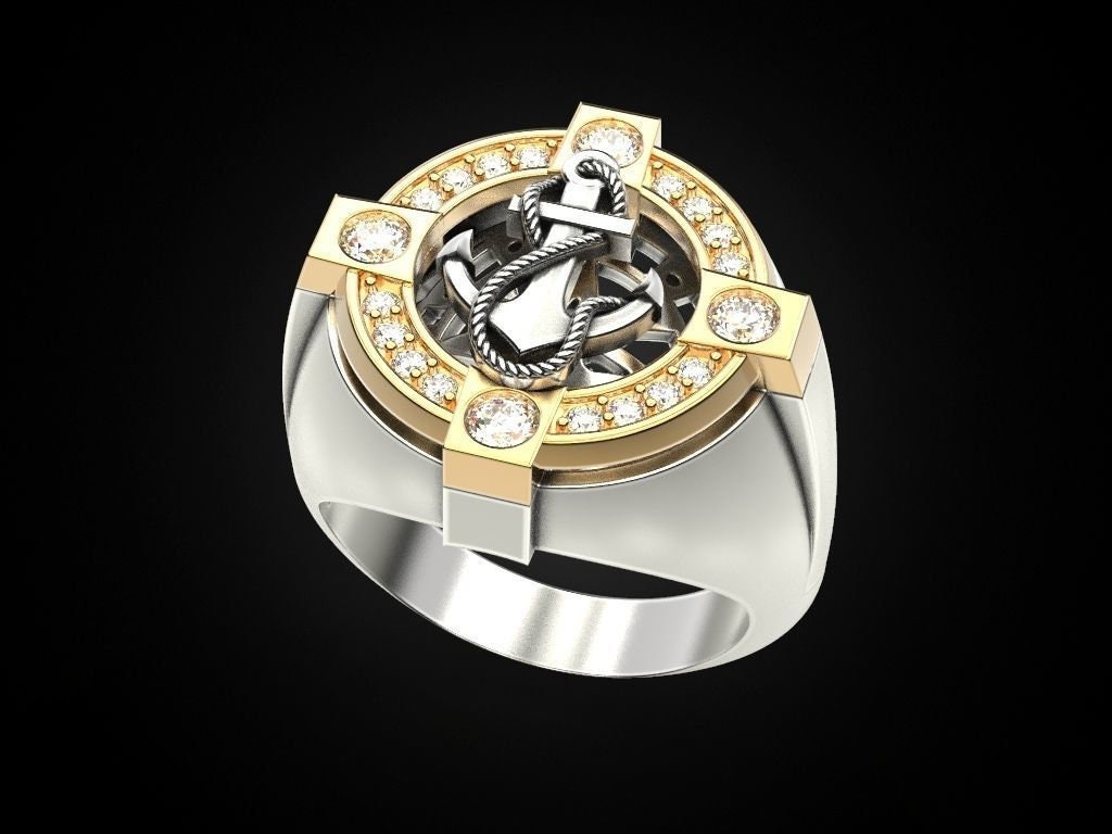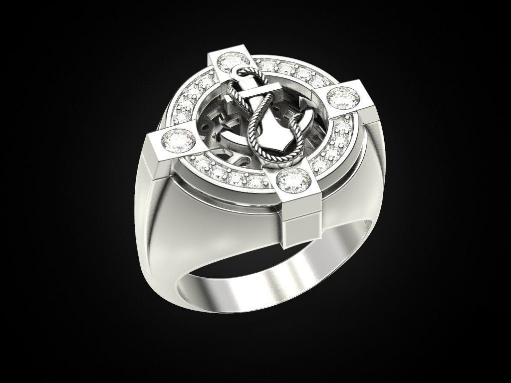Sail Away Anchor Ring *0.68 Carat Moissanite With 10k/14k/18k White, Yellow Rose Green, Gold Gold Plated & Silver* Boat Ship Men Thumb Gift